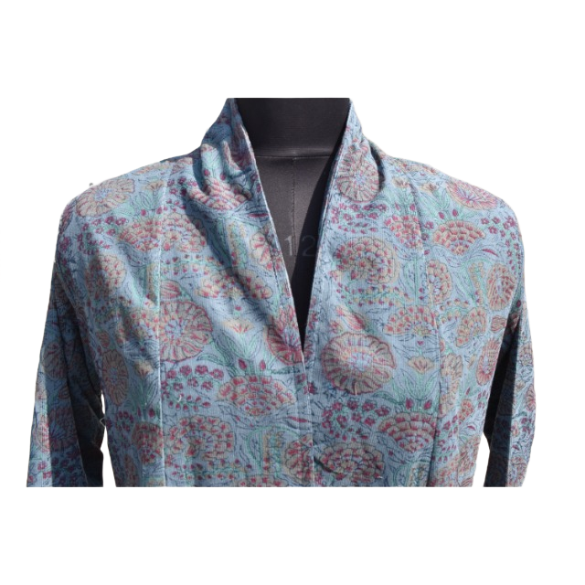 แจ็คเก็ตผ้าฝ้ายผ้าลูกฟูกลายดอกไม้พิมพ์ bagru งานฝีมือระบายอากาศสินค้าสำเร็จรูป