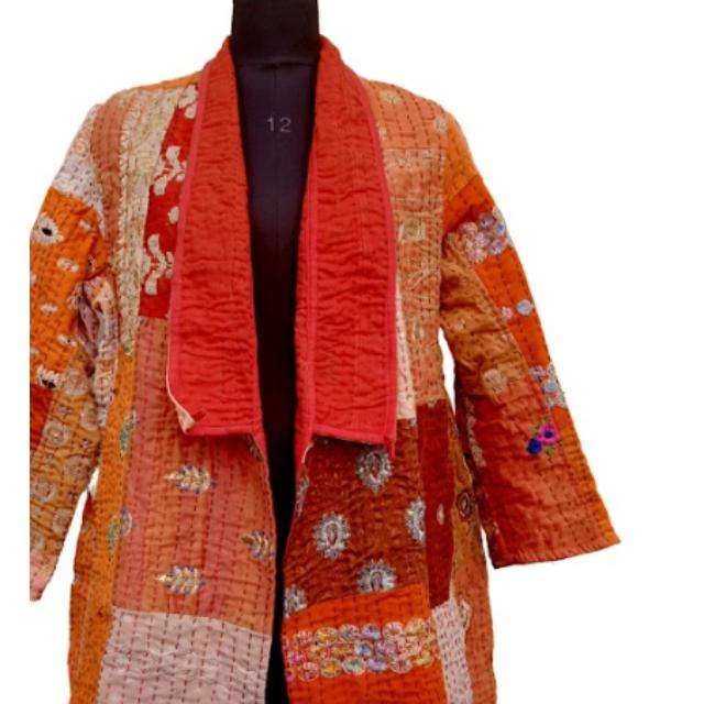 เสื้อแจ็กเก็ต khambadiya Kantha เสื้ออินเดียทำด้วยมือผ้าฝ้ายเสื้อแจ็กเก็ตสไตล์ไม่ซ้ำใคร