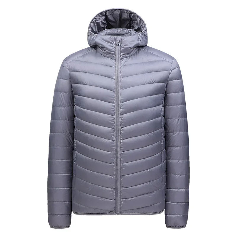 เสื้อแจ็คเก็ตพัฟเฟอร์ผู้ชายคุณภาพสูงสำหรับฤดูหนาว มีฮู้ด คอวี ระบายอากาศได้ดี บุด้วยใยโพลีเอสเตอร์ ผ้าแคนวาส สไตล์ไฮสตรีท