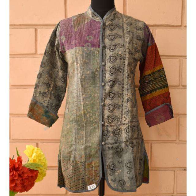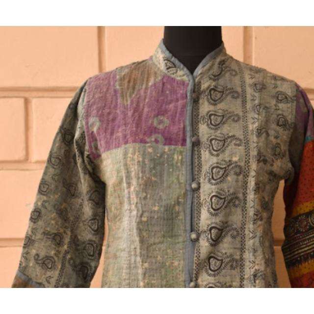 เสื้อแจ็กเก็ตยาวผ้าฝ้ายสโตนวอชปะผ้ากันธา