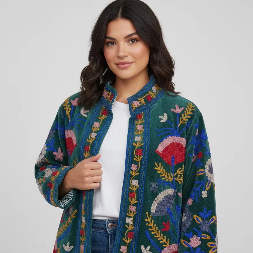 เสื้อแจ็คเก็ตสไตล์ซูซานี เสื้อโค้ทผู้หญิง ลายสก็อต ซับในผ้าฝ้าย สำหรับฤดูหนาว ฟรีไซส์