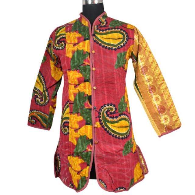 ชื่อผลิตภัณฑ์:แจ็คเก็ตผ้าฝ้ายวินเทจ Kantha ยาว