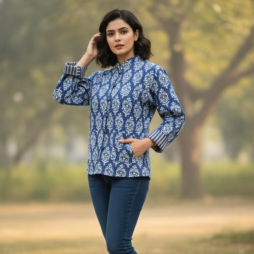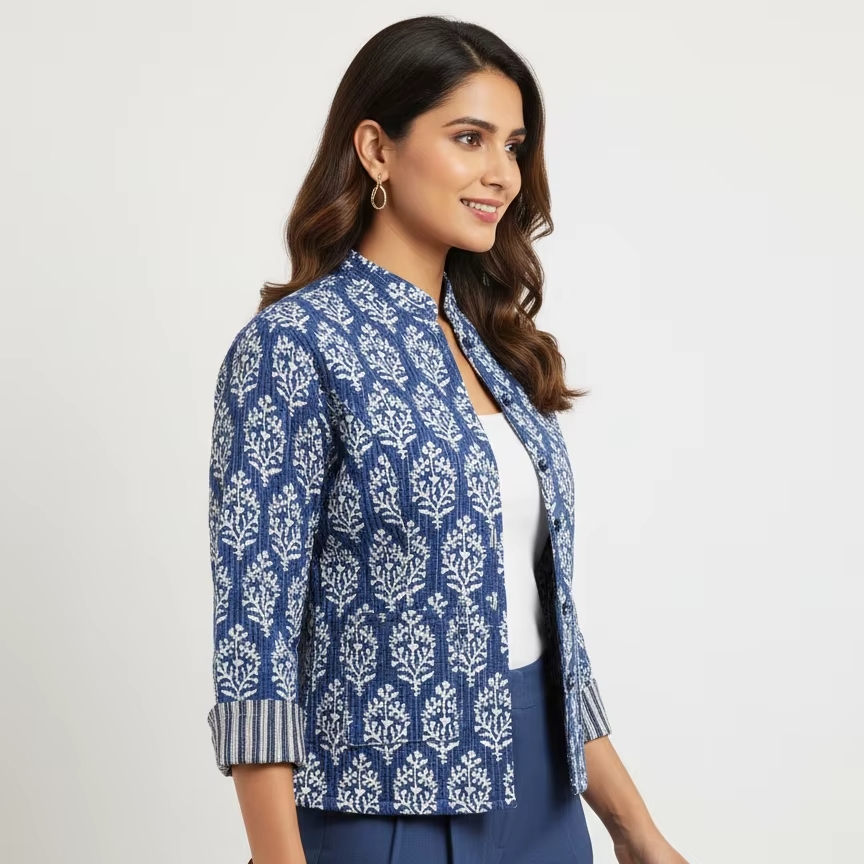 เสื้อแจ็คเก็ตผ้าฝ้ายพิมพ์ลายควิลท์