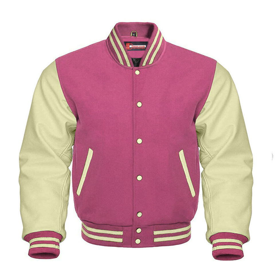แจ็กเก็ตสำหรับผู้ชายแจ็กเก็ตขนสัตว์สีชมพูน่ารักสีขาวครึ่งดีไซน์สำหรับผู้ใหญ่โลโก้ตามสั่ง