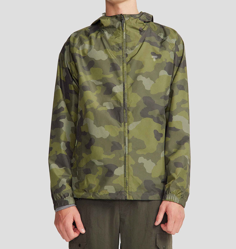 เสื้อแจ็กเก็ตผู้ชายเสื้อแจ็กเก็ตกันฝนกลางแจ้งผ้าโพลีเอสเตอร์กันน้ำเสื้อกันลมไม่มีลายพรางผลิต OEM