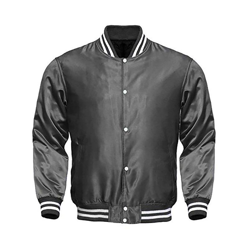 แจ็คเก็ตผ้าซาตินสำหรับผู้ชายเสื้อแจ็กเก็ตเบสบอลผ้ากำมะหยี่แขนเสื้อหนัง
