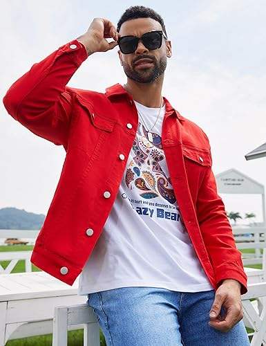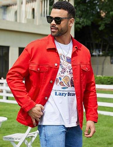แจ็คเก็ตยีนส์สำหรับผู้ชาย, แจ็คเก็ตยีนส์ทรักเกอร์เสื้อโค้ทไม่มีซับในชุดฤดูใบไม้ผลิฤดูใบไม้ร่วง
