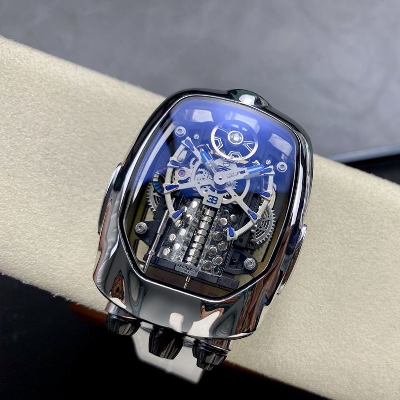 นาฬิกา Jacob Co Bugatti Chiron Tourbillon ทองคำขาว ดีไซน์เครื่องยนต์ 16 สูบ ระบบอัตโนมัติ สายยาง