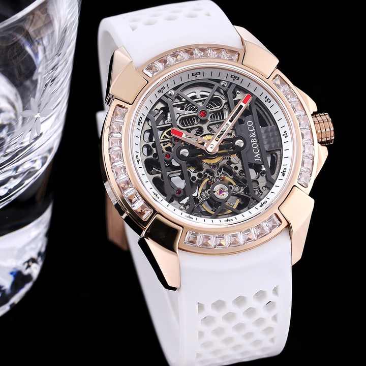 นาฬิกาควอตซ์สามมือของผู้ชายจากจาค็อบแสดงวันที่โครงทันสมัยพร้อมเม็ดเพชรนาฬิกาสุดเท่และทันสมัย