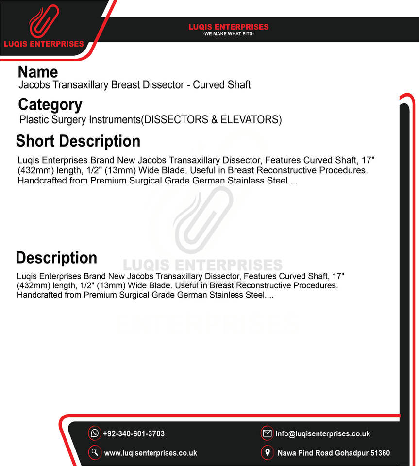 Jacobs เครื่องมือทางการแพทย์ทำศัลยกรรมพลาสติกเครื่องมือทางการแพทย์ทำศัลยกรรมแบบโค้งสำหรับผ่าตัดที่หน้าอก