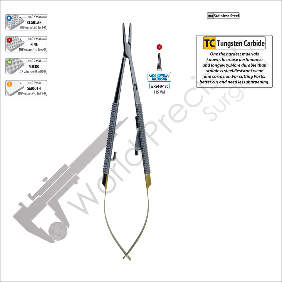 ที่จับเข็มผ่าตัดขนาดเล็กแบบใช้ซ้ำได้ของเจค็อบสัน พร้อมหัวทังสเตนคาร์ไบด์ | ชุดอุปกรณ์ผ่าตัดสแตนเลสสำหรับโรงพยาบาลและหู คอ จมูก