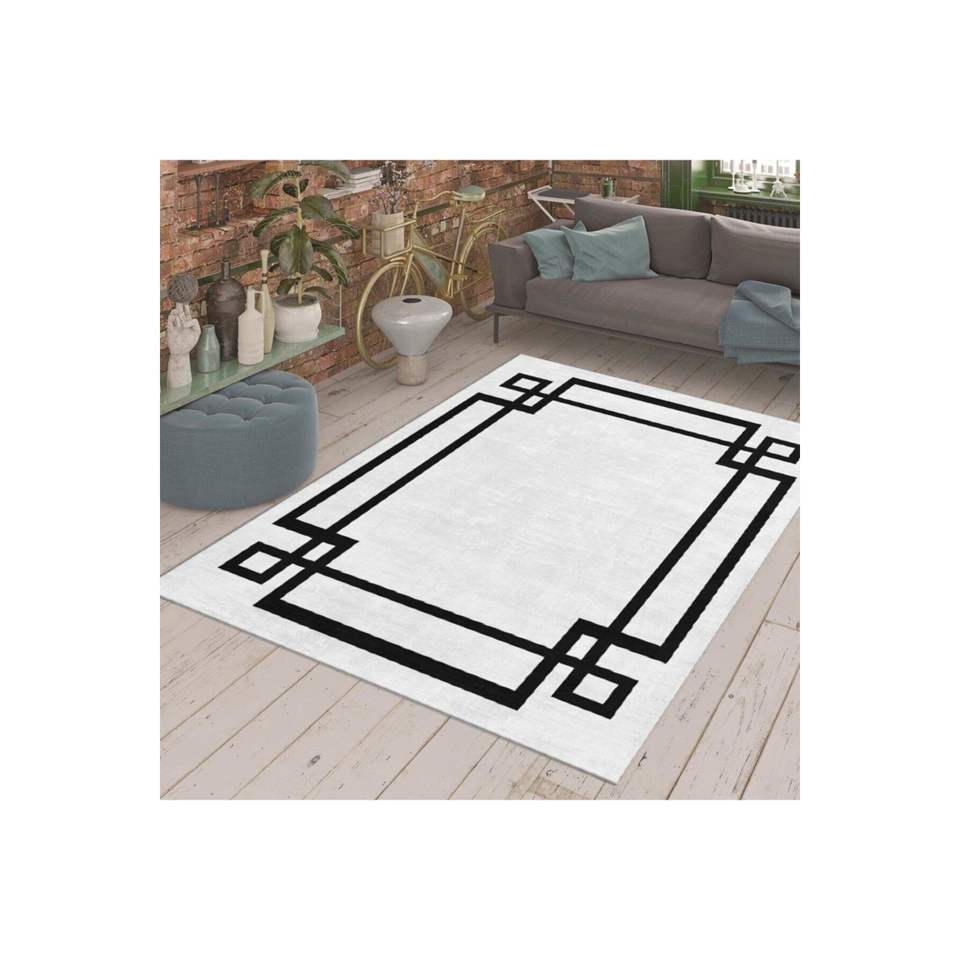 Jacquard พรมโพลีเอสเตอร์ทรงสี่เหลี่ยมพิมพ์ลายดิจิตอลทำด้วยมือพรมโพลีเอสเตอร์สำหรับห้องนั่งเล่นกรอบสีขาวรูปแบบรายละเอียดพรมขนาดใหญ่