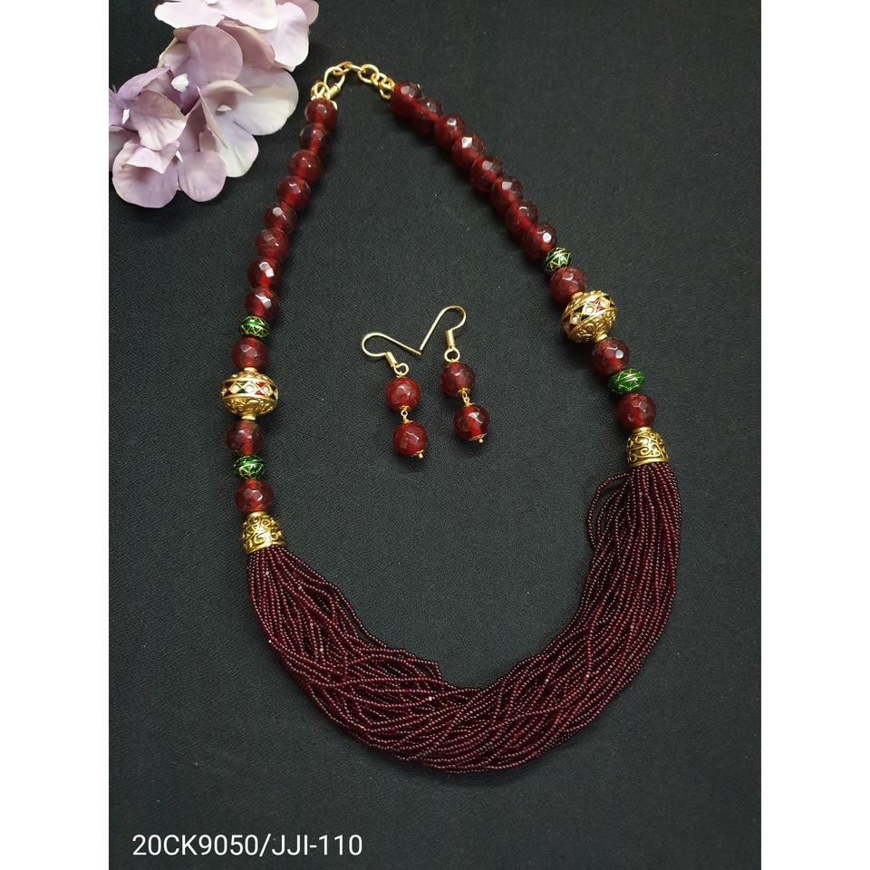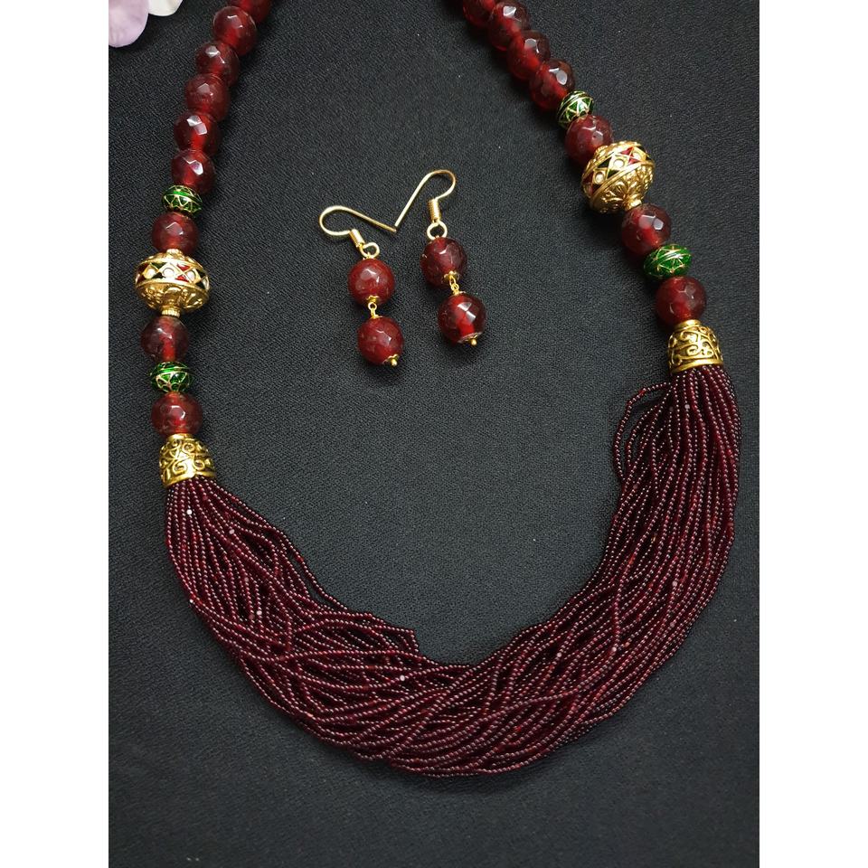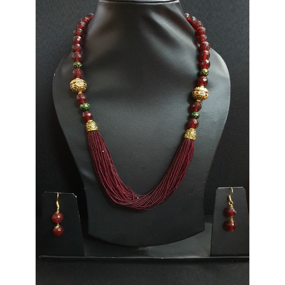 ชุดสร้อยคอลูกปัดเบอร์กันดีทำด้วยมือพร้อมต่างหูเครื่องประดับแบบดั้งเดิมอินเดียสร้อยคอแฟชั่นสำหรับเจ้าสาวแบบหลายเส้นสำหรับผู้หญิง
