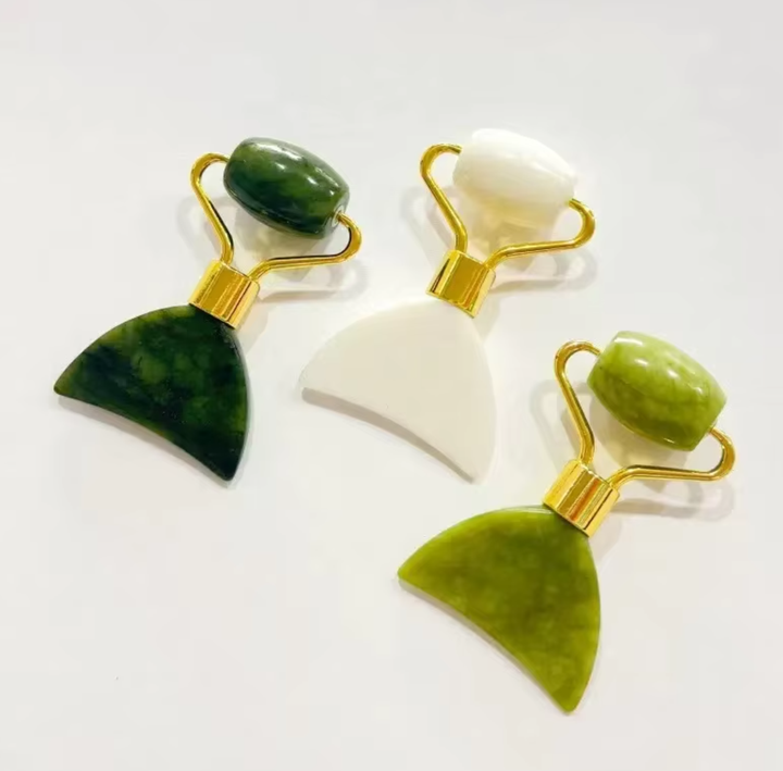หินหยกกว่าซาและลูกกลิ้งนวดหน้าขนาดเล็ก 2-in-1 หยกซิ่วเยี่ยน