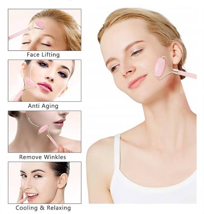 เครื่องนวดหน้าทำจากหินหยกอุปกรณ์นวดหน้าทำจากคริสตัลสองด้านกรอบสแตนเลสอัลลอยสำหรับผิวระบายน้ำเหลืองไม่เสื่อมสภาพ