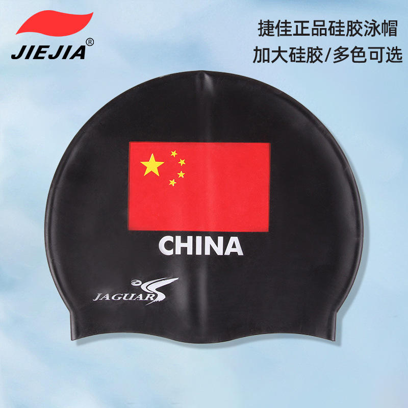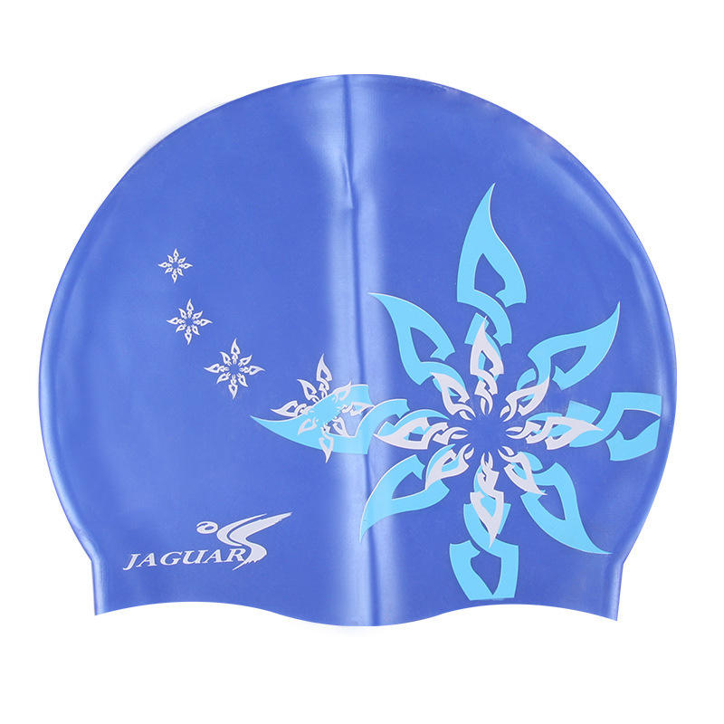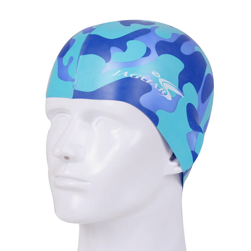 หมวกว่ายน้ำซิลิโคนจากยี่ห้อ Jaguar สำหรับผู้ใหญ่ แบบ unisex กันน้ำ ลายพิมพ์ สำหรับว่ายน้ำและกีฬาทางน้ำ