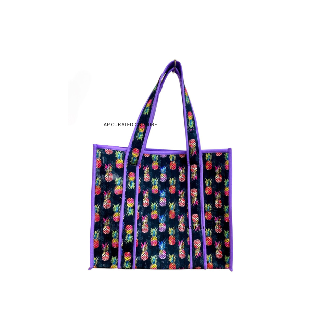 กระเป๋าโท้ทผ้าฝ้ายลายพิมพ์บล็อกแบบจาไปร์ ตกแต่งระบาย รักษ์โลก งานฝีมือ ดีไซน์อินเดีย สำหรับผู้หญิง ใช้ช้อปปิ้งหรือใช้ในชีวิตประจำวัน