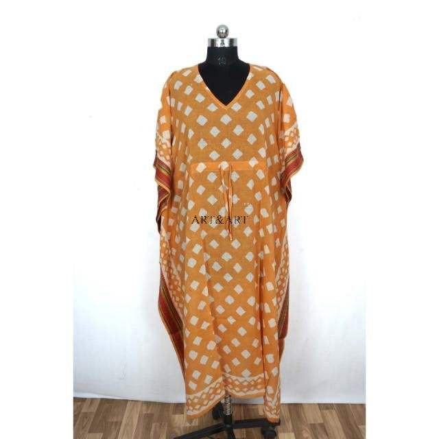 ชุดเดรสยาวพิมพ์ลายบล็อกแฮนด์เมดจากเมืองชัยปุระ ผ้าฝ้าย แต่งขอบ คอวี เหมาะสำหรับเป็นของขวัญวันฮาโลวีน ชุดเดรสชายหาด