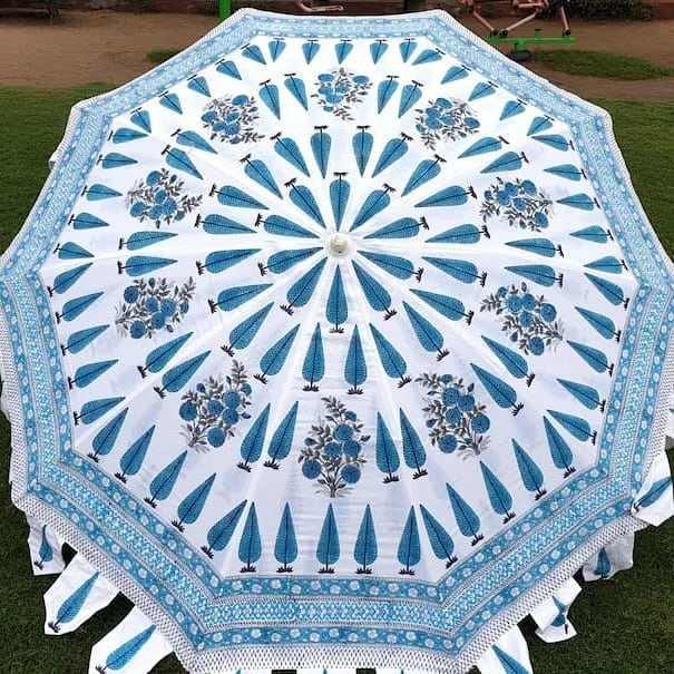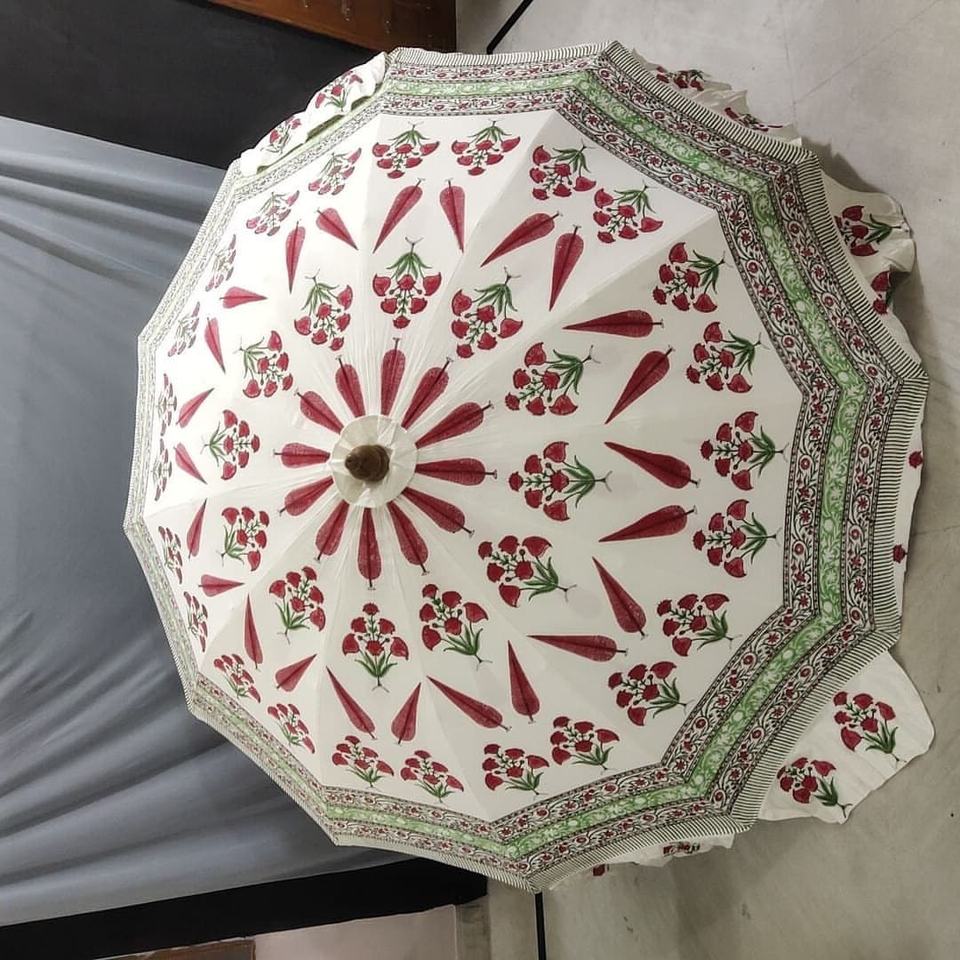 ร่มผ้าฝ้ายทำมือแบบกึ่งอัตโนมัติ ดีไซน์โบฮีเมียนจากชัยปุระ ป้องกันแสงแดด สำหรับใช้ในสวน