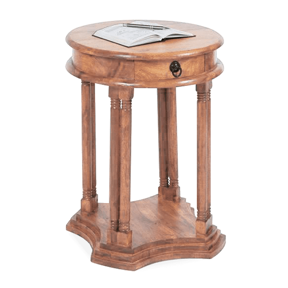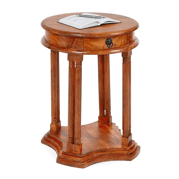 โต๊ะโทรศัพท์ไม้จริงสไตล์โมเดิร์นจากเมืองชัยปุระ พร้อมชั้นวางหนังสือ ดีไซน์รักษ์โลก เหมาะสำหรับใช้ในบ้าน สำนักงาน ห้องนอน และห้องรับประทานอาหาร