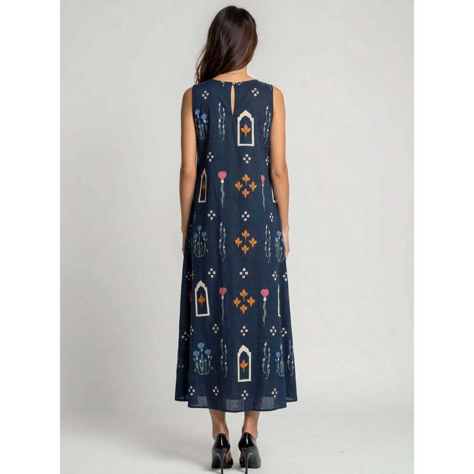 ชุดเดรสทรงเอไลน์ผ้าฝ้ายแท้ 100% ลายพิมพ์บล็อกและงานปักสุดหรูสำหรับผู้หญิง ไซส์ XS-5XL ไซส์พลัส เหมาะสำหรับงานปาร์ตี้กลางวันหรืองานสังสรรค์
