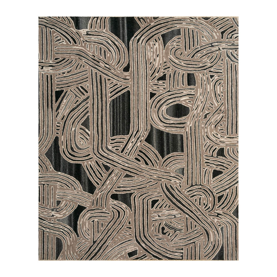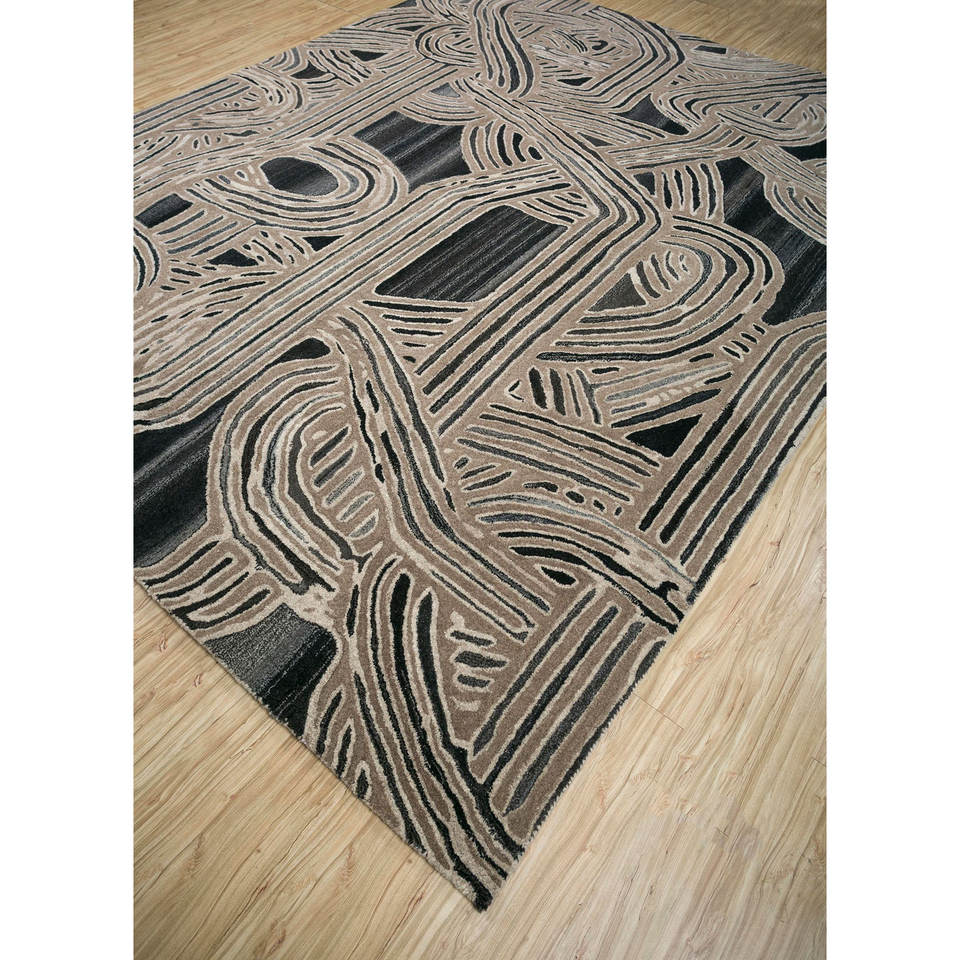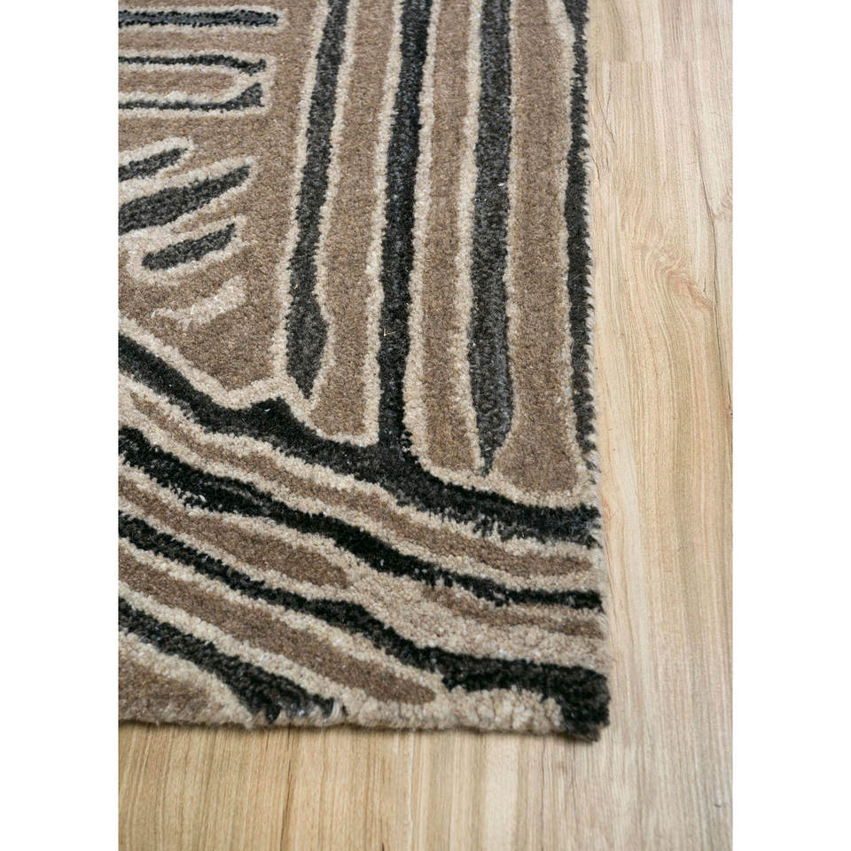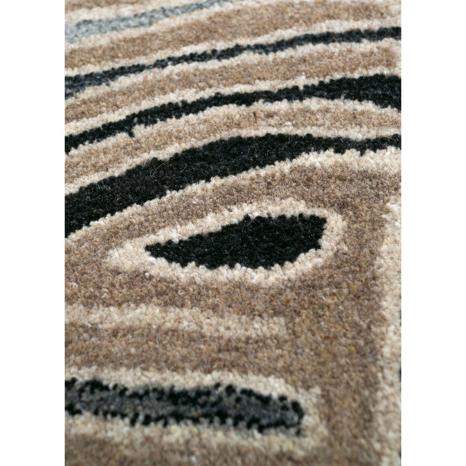 พรมจาไพร์ FR Tahn-11 สีเบจและสีน้ำตาล ทอมือจากขนสัตว์ ลายแบบโบโฮ สำหรับห้องนั่งเล่นหรือทางเดิน