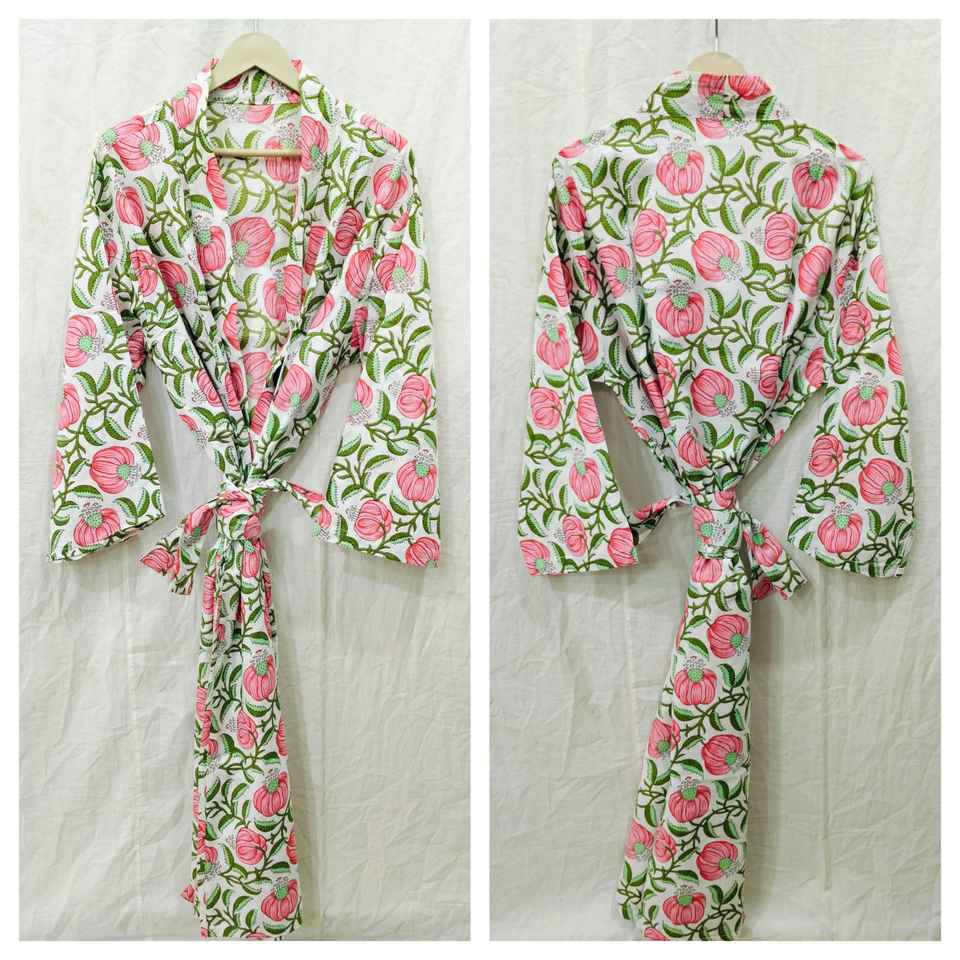 ชุดคลุมหรูหราสไตล์ชัยปุระ ลายดอกไม้ ผ้าทอเนื้อนุ่ม ระบายอากาศได้ดี อุ่นสบาย ขนาดฟรีไซส์ แขนครึ่งตัว มีเชือกผูก เหมาะสำหรับใส่ที่บ้านหรือชุดนอน-ODM
