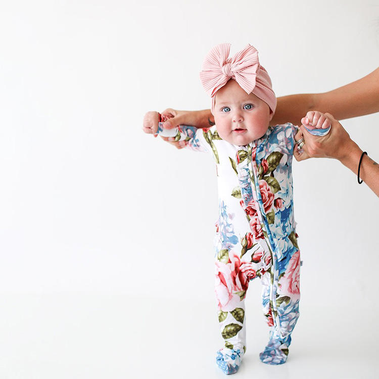 ชุดรอมเปอร์เด็กทารกผ้าไผ่ยี่ห้อ Jambear แบบมีซิป ชุดรอมเปอร์ผ้าไผ่แบบมีระบาย ชุดนอนเด็กแบบมีซิป ชุดนอนเด็กวัยหัดเดินแบบมีระบาย