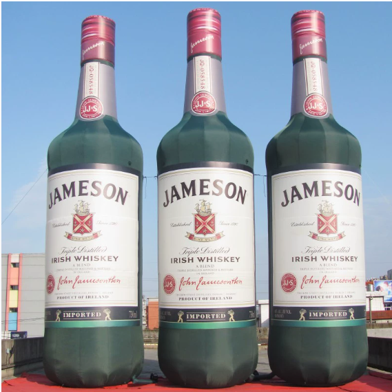 ขวดวิสกี้เจมสันไอริชขนาดยักษ์เป่าลมสำหรับโฆษณาในบาร์