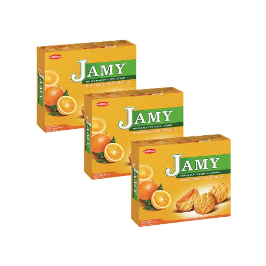 บิสกิต Jamy สอดไส้ส้มนอกกรอบและผลไม้ภายในขนมขบเคี้ยว200กรัม
