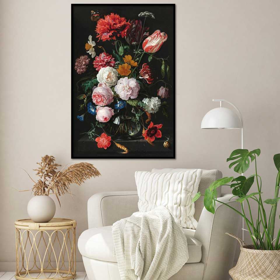 ภาพพิมพ์ศิลปะของแจน ดาวิดซ์ เดอ ฮีม ภาพนิ่งที่งดงามพร้อมดอกไม้