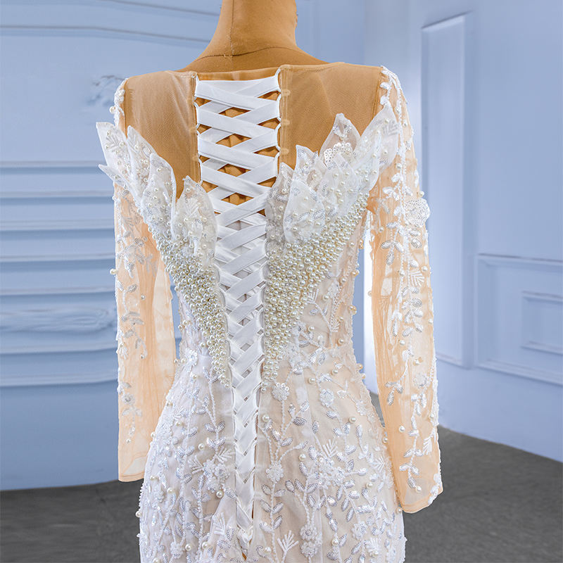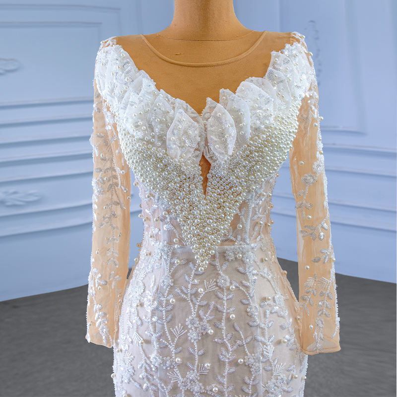 222196แจ็นเซมเบอร์ชุดแต่งงานสุดหรูประดับมุกลวงตานางเงือกพร้อมขบวนรถไฟ
