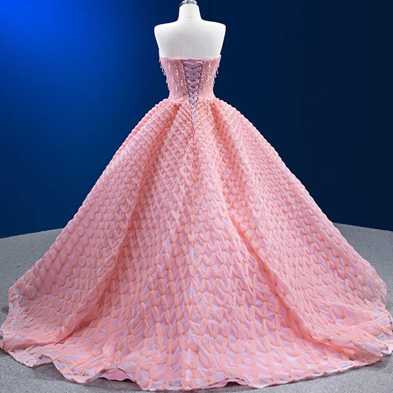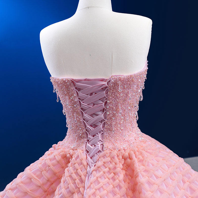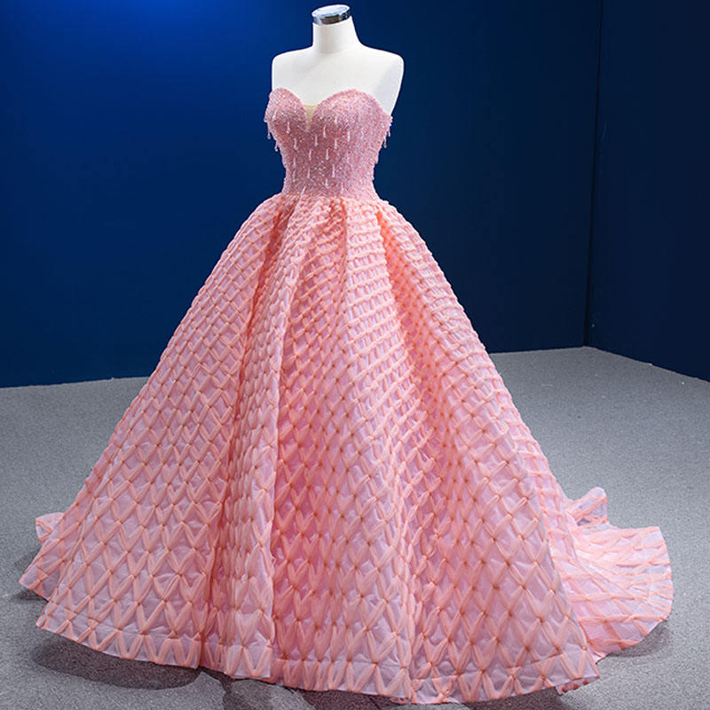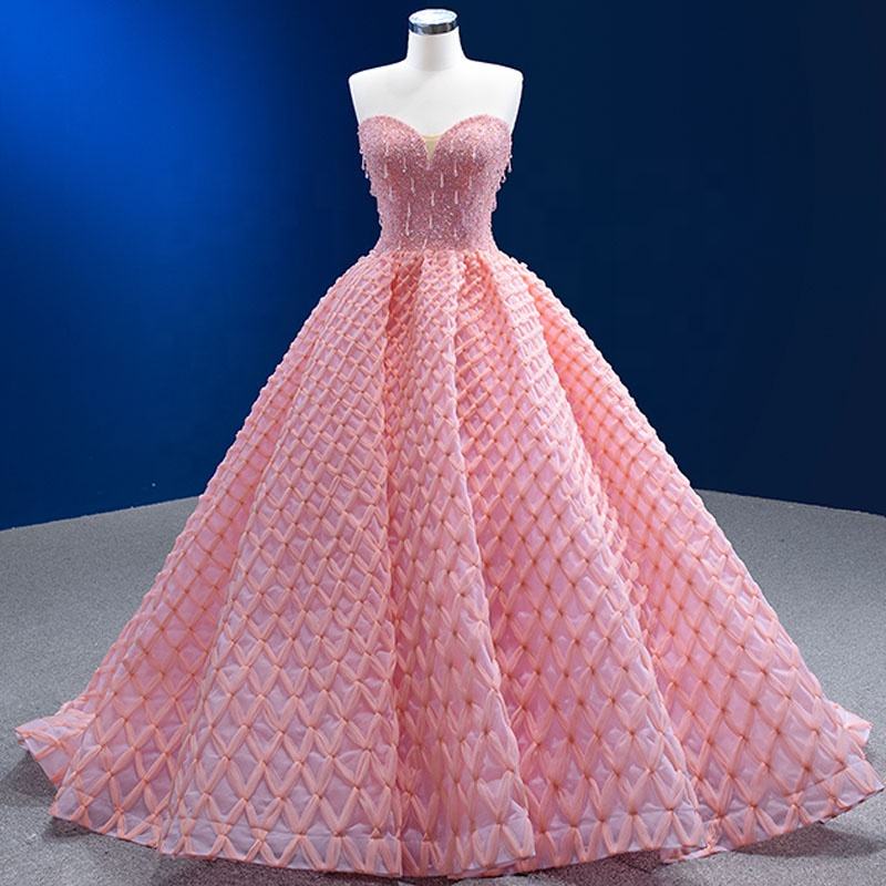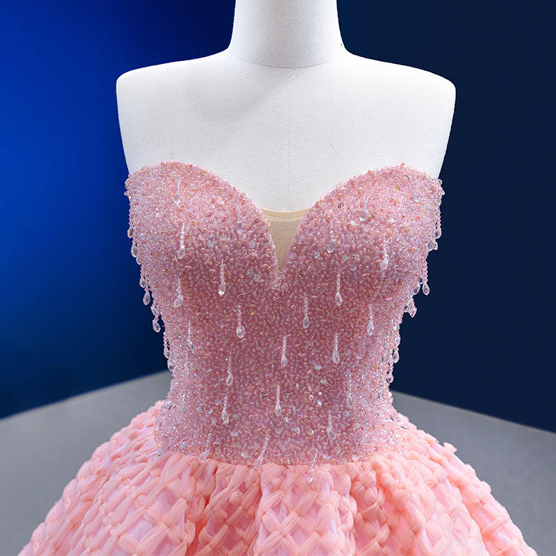 ชุดเดรสคลุมท้องสีชมพูวินเทจ รุ่น 222227 เอวธรรมชาติ แขนกุด คอรูปหัวใจ แต่งระบายจีบ ยาวลากพื้น สำหรับงานเลี้ยงกลางคืนหรืองานทางการ