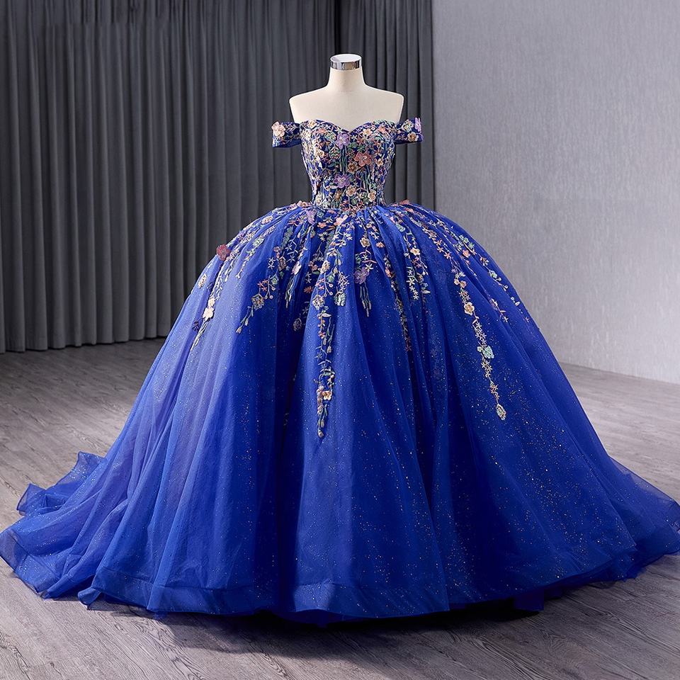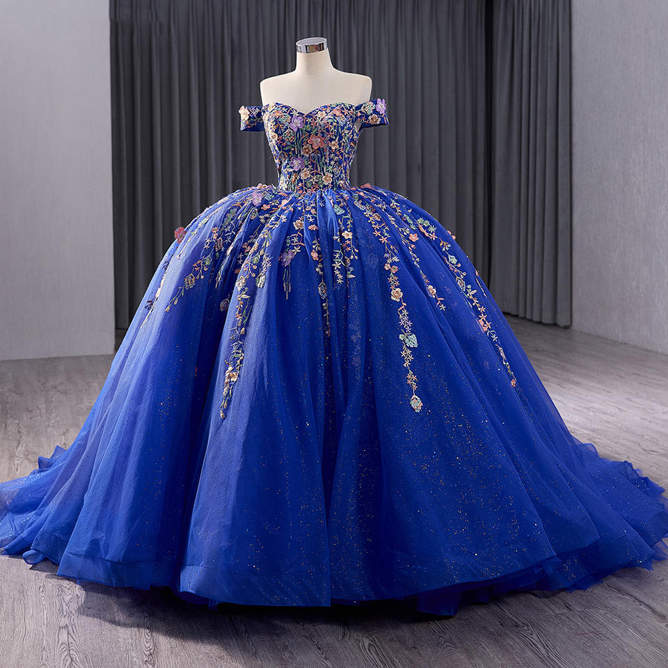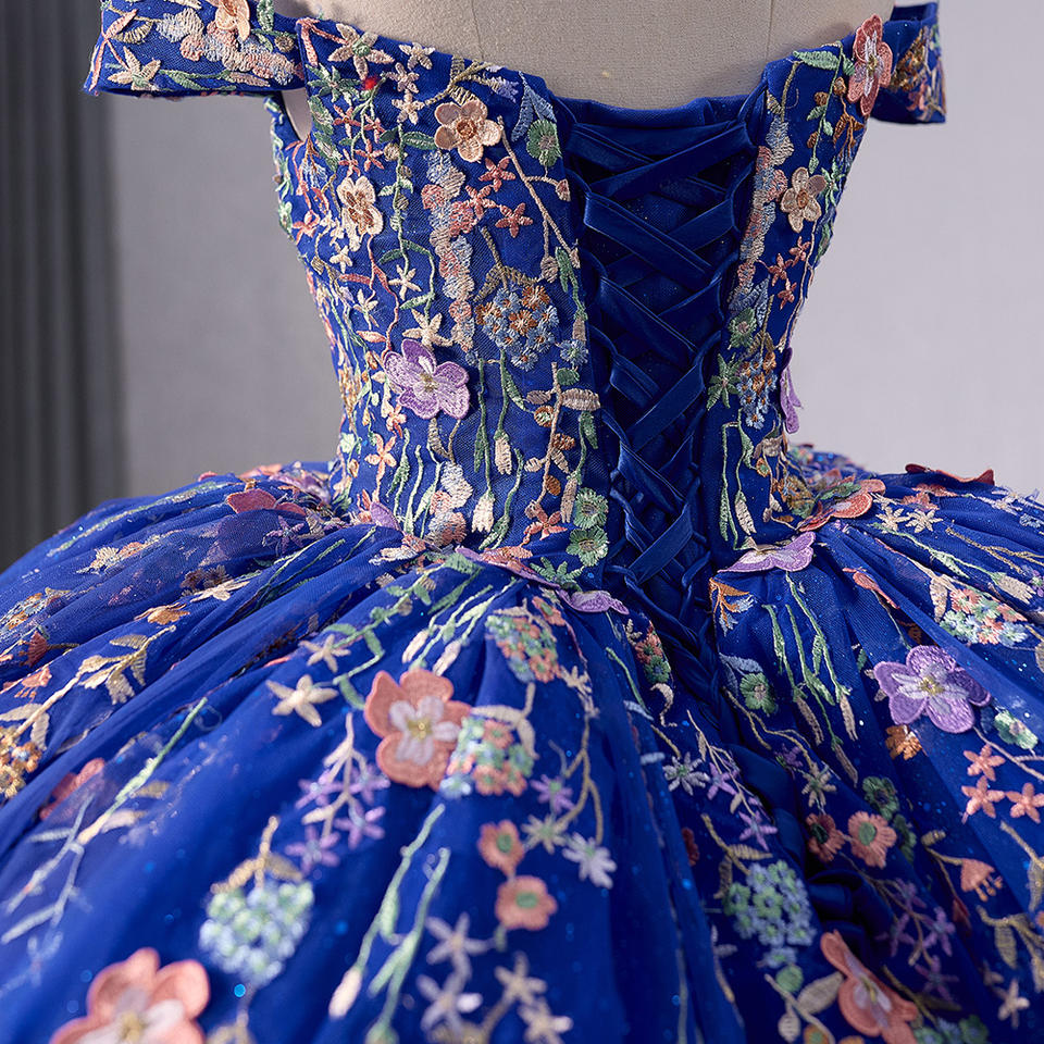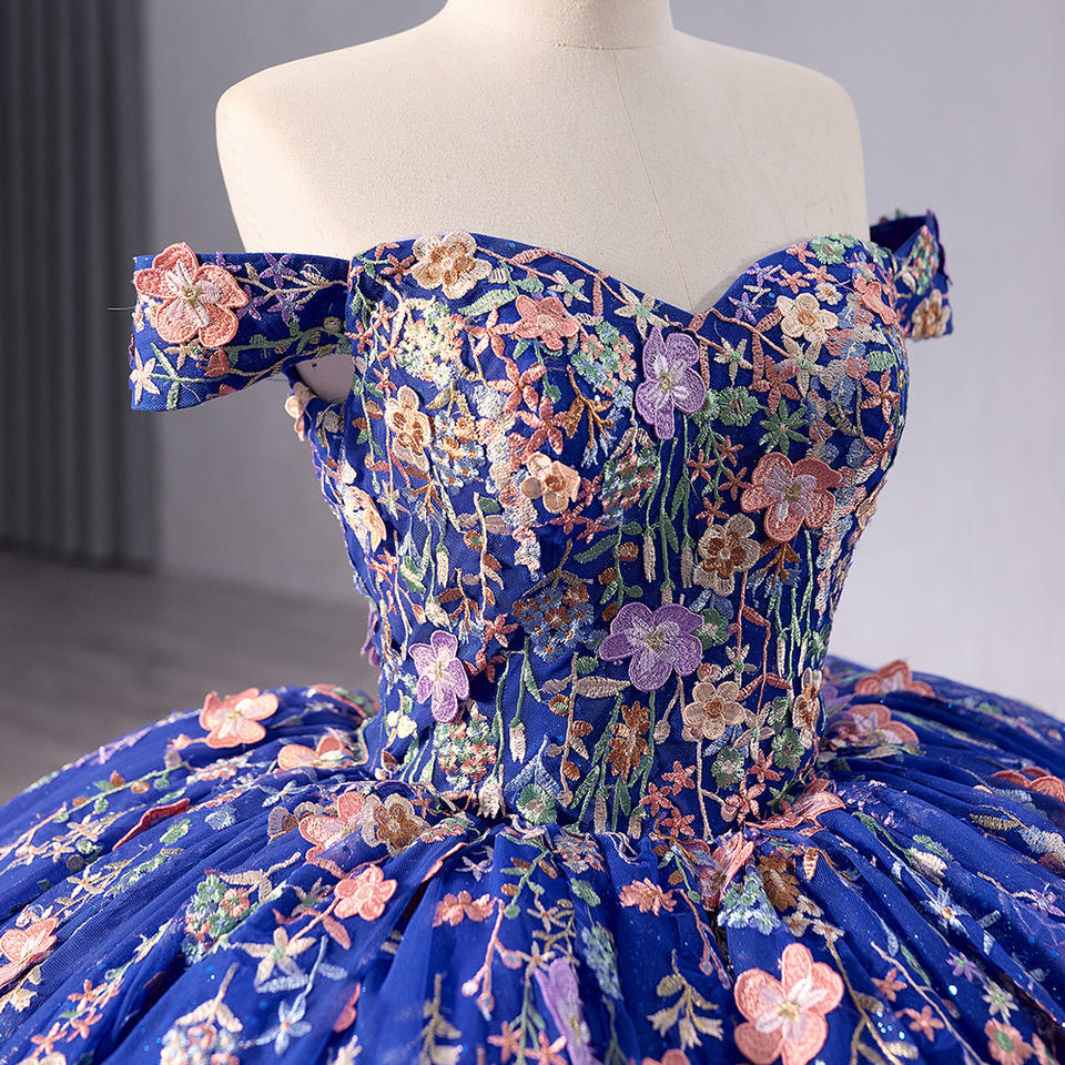 ชุดเดรส quinceanera ลายดอกไม้ผ้าปะติดสีน้ำเงินเข้มหรูหรา231051B แจ็นเซมเบอร์