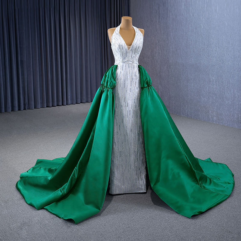 ชุดเดรสปาร์ตี้ตอนเย็นเปิดไหล่คล้องคอสไตล์วินเทจของแจนเซมเบอร์231081พร้อมขบวนรถไฟ