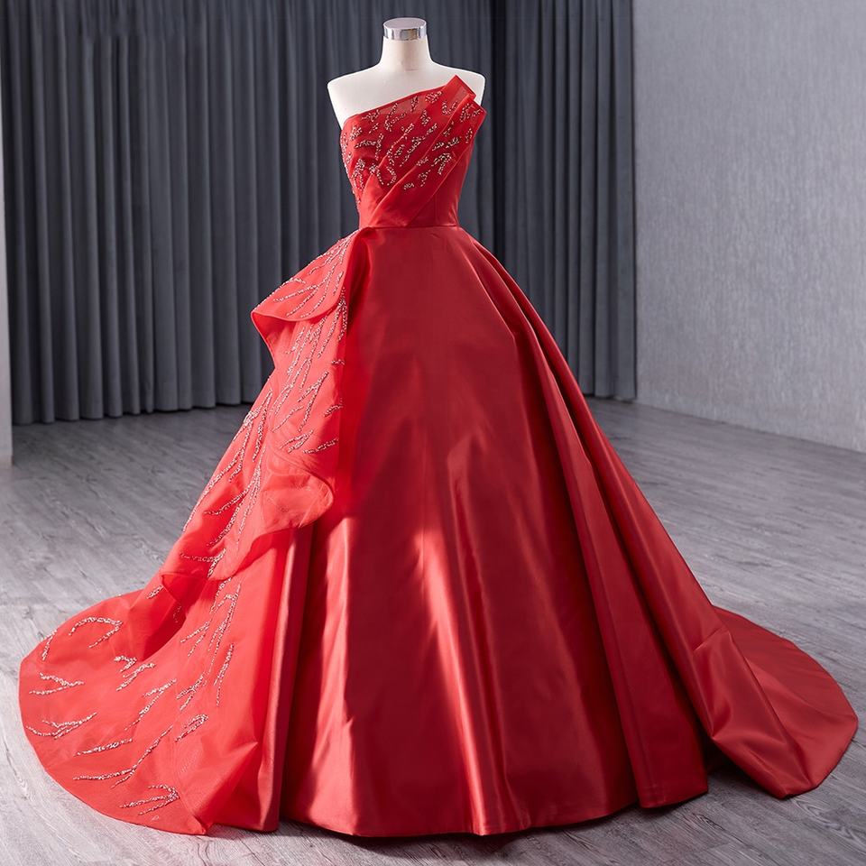 ชุดเดรสปาร์ตี้ยามเย็นของผู้หญิงชุดเดรสผ้าซาตินปักเลื่อมสีแดงแบบคลาสสิกของ241010จากแจนเซมเบอร์