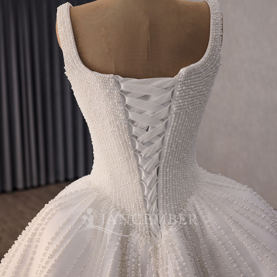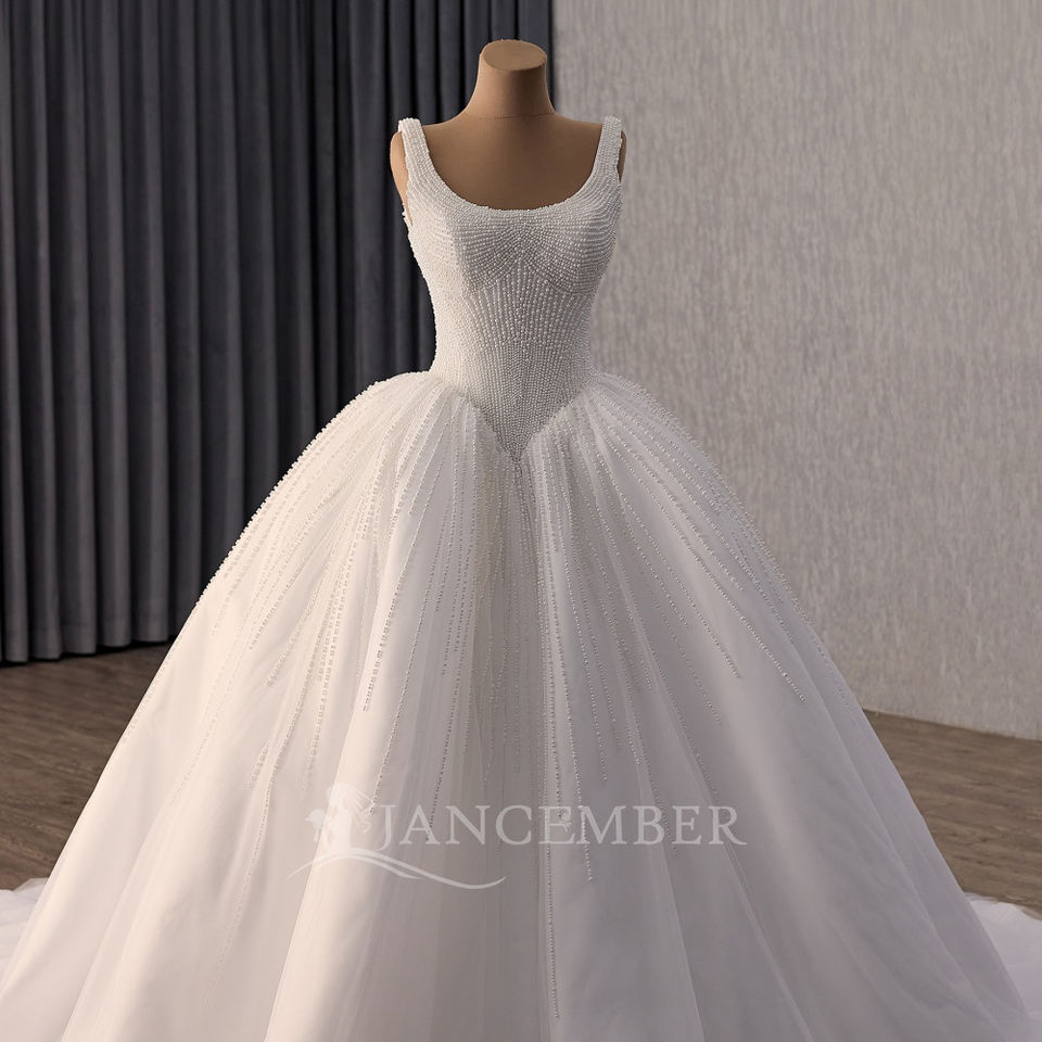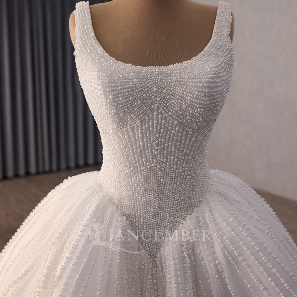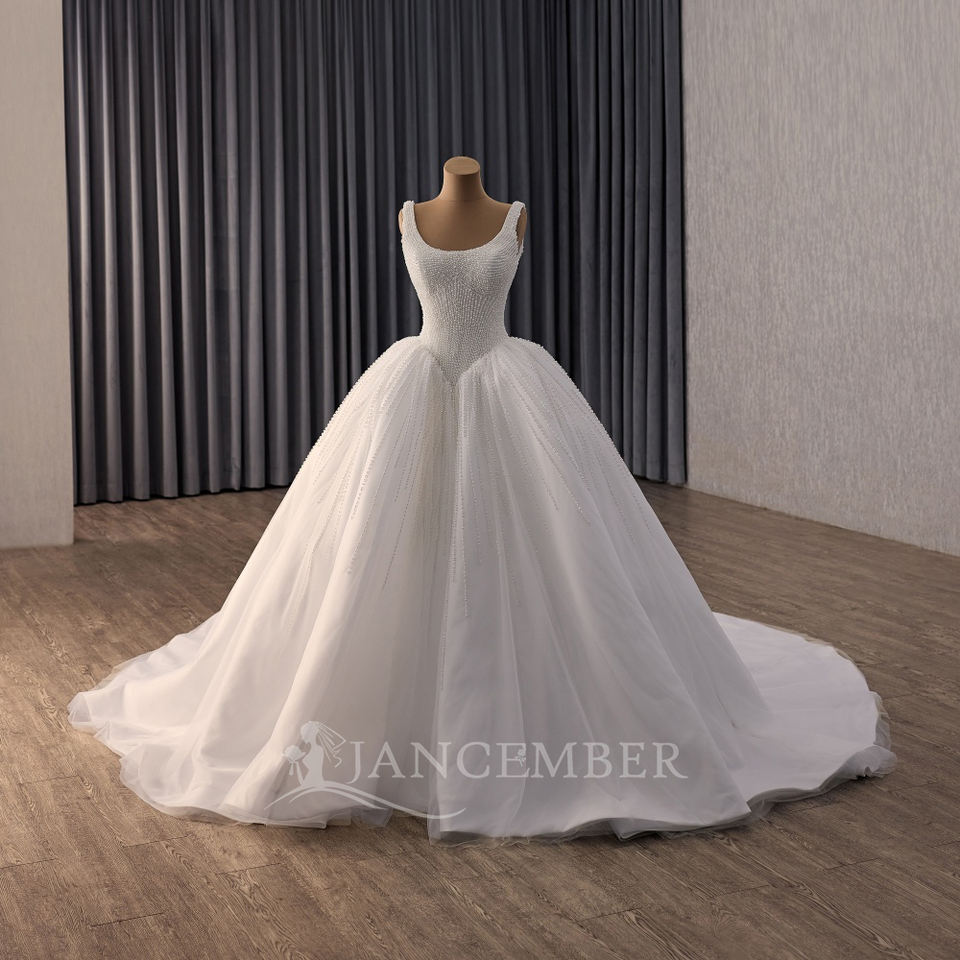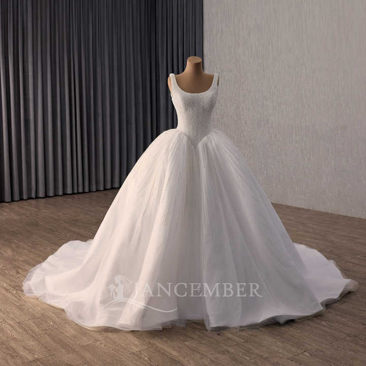 ชุดแต่งงานสีขาวหรูหราแบบบอลกาวน์ แขนกุด ประดับลูกปัด สำหรับงานแต่งงาน รุ่น Jancember 261108