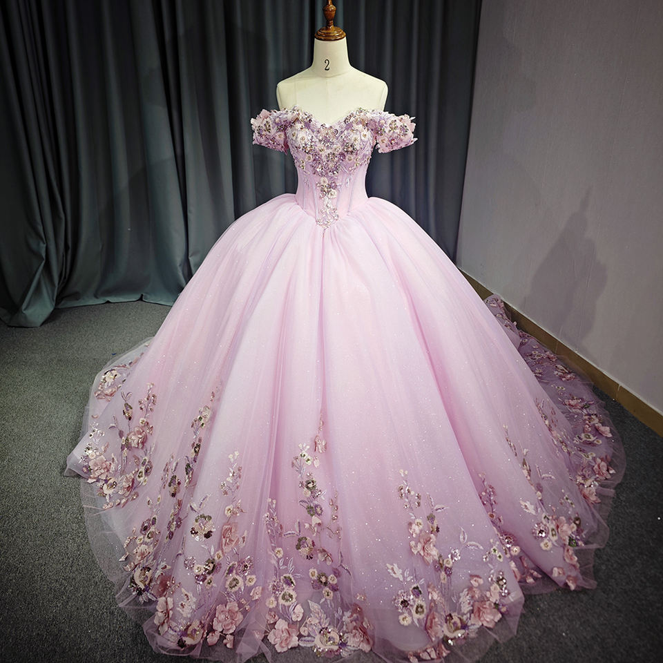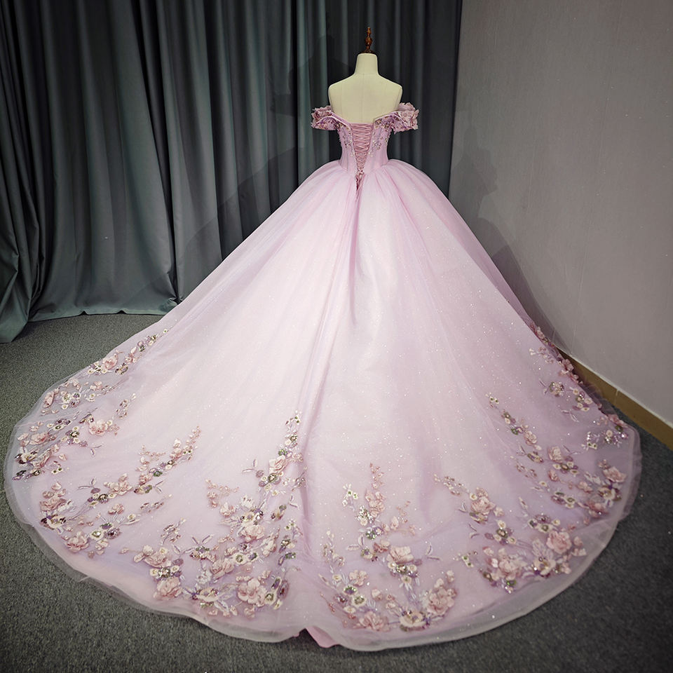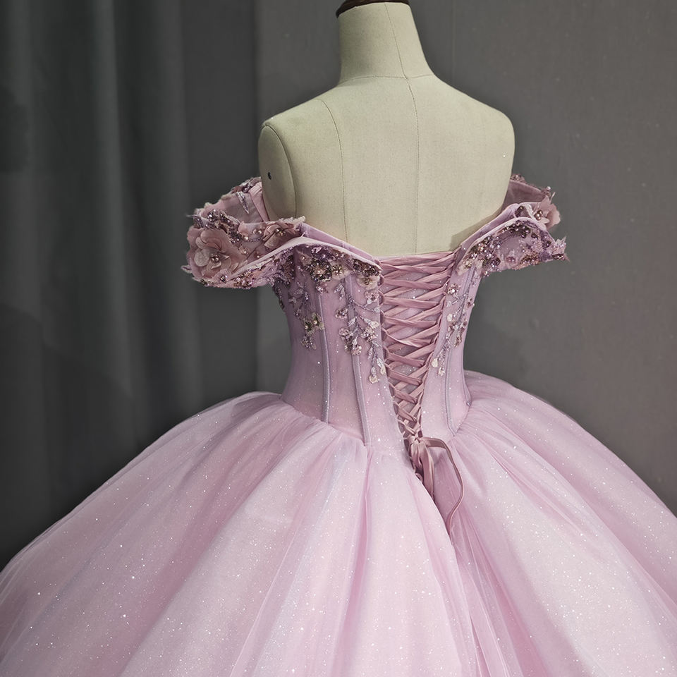 Jancember เดรสเปิดไหล่เอ็มไพร์สีชมพูสำหรับเด็กผู้หญิงสง่างาม6741