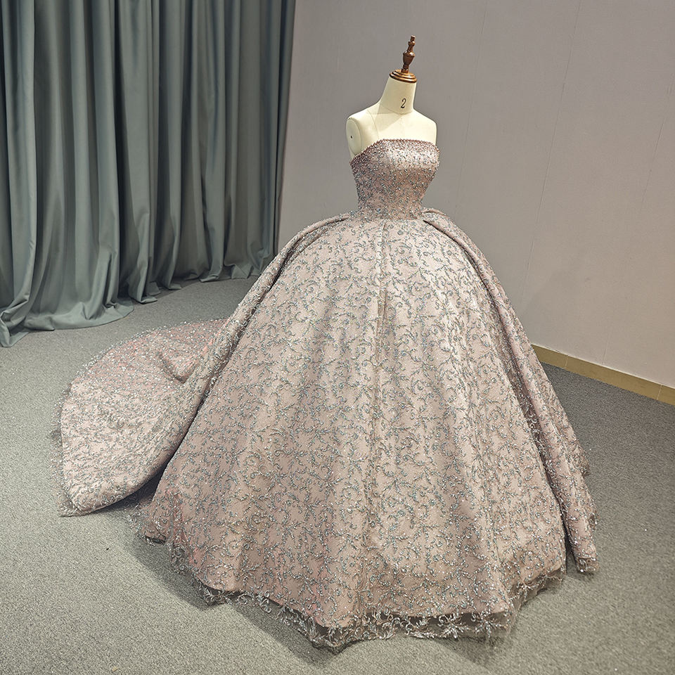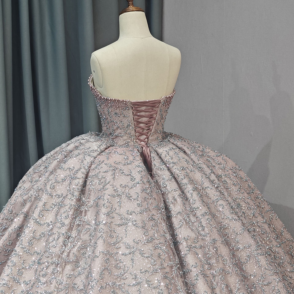 ชุดเดรส6742ราตรีลูกไม้ปักเลื่อมไข่มุกหรูหราสำหรับเด็กผู้หญิง