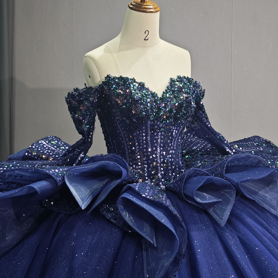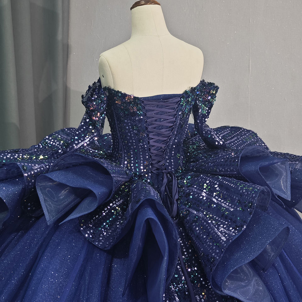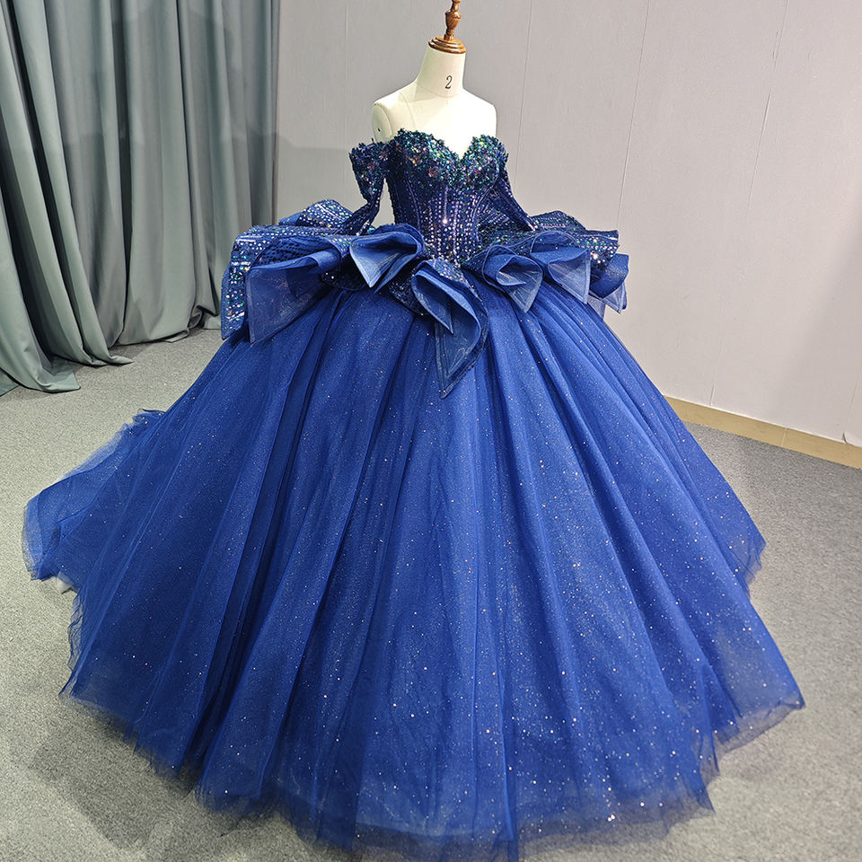 Jancember 6761ชุดราตรีหรูหราทรงพองสีน้ำเงิน