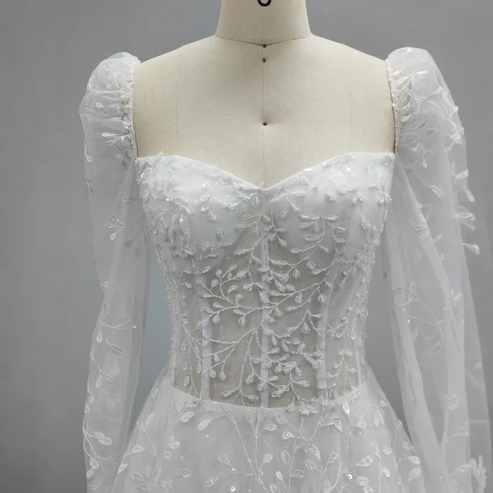 ชุดแต่งงานที่หรูหราทันสมัยการตกแต่งพาดโบสถ์ด้านหลังภาพลวงตาสำหรับเจ้าสาวแม่เจ้าสาววัสดุที่ปรับแต่งได้
