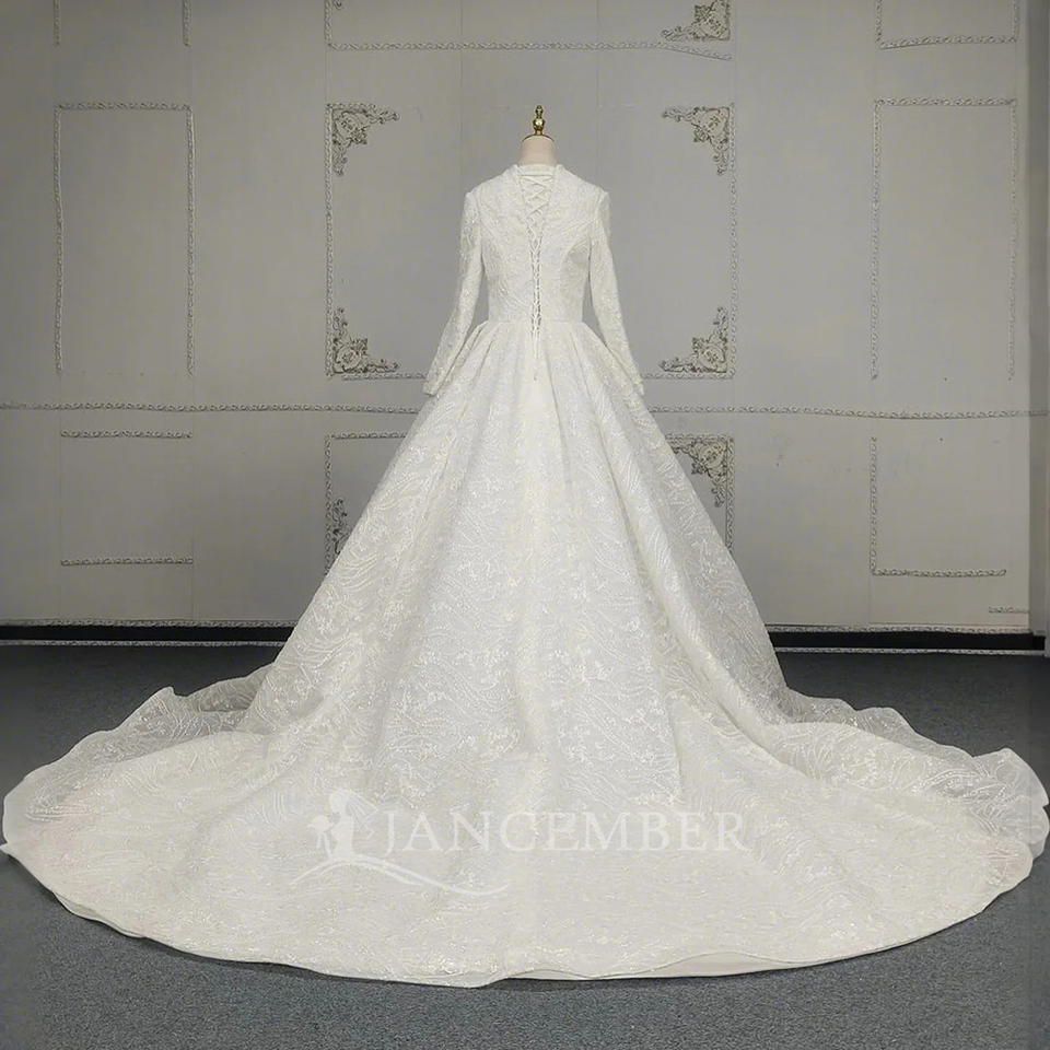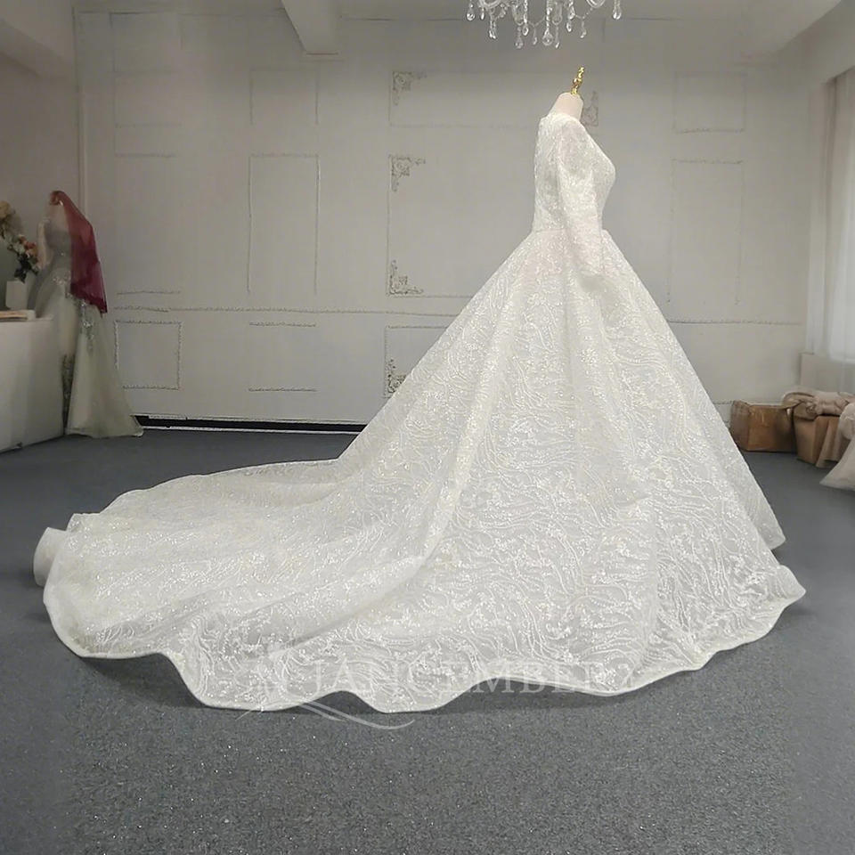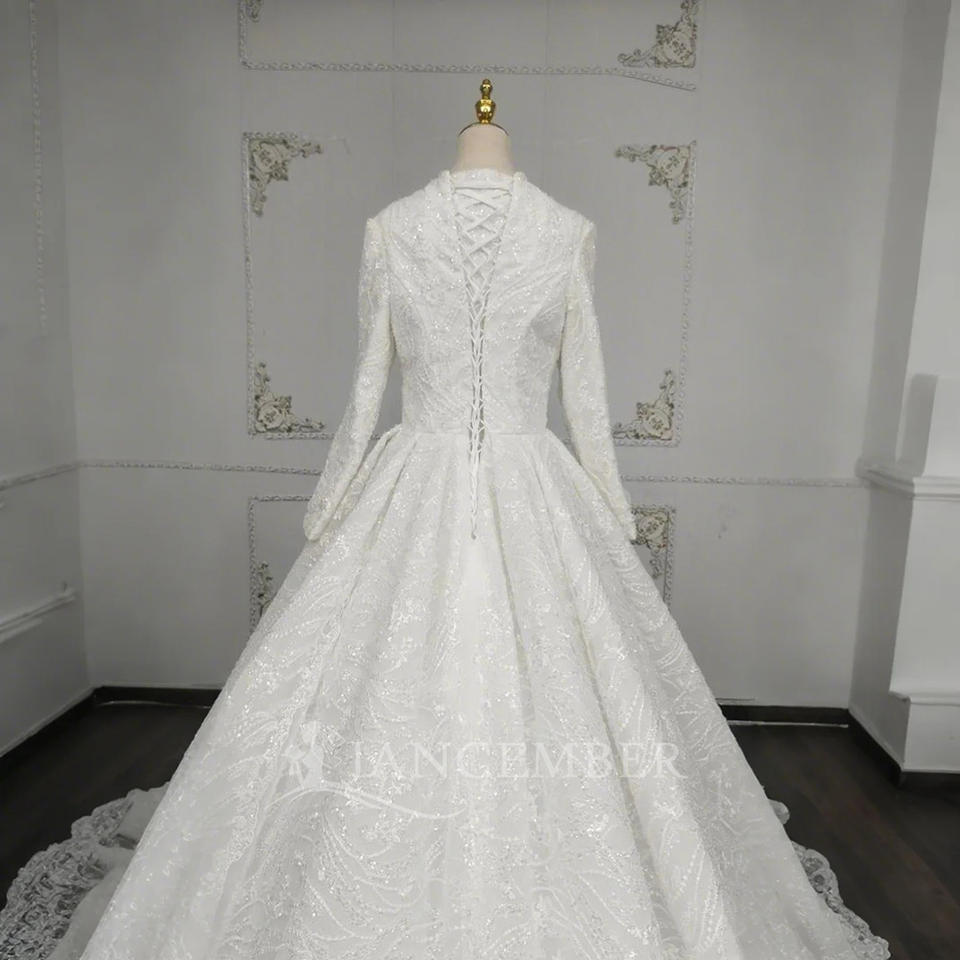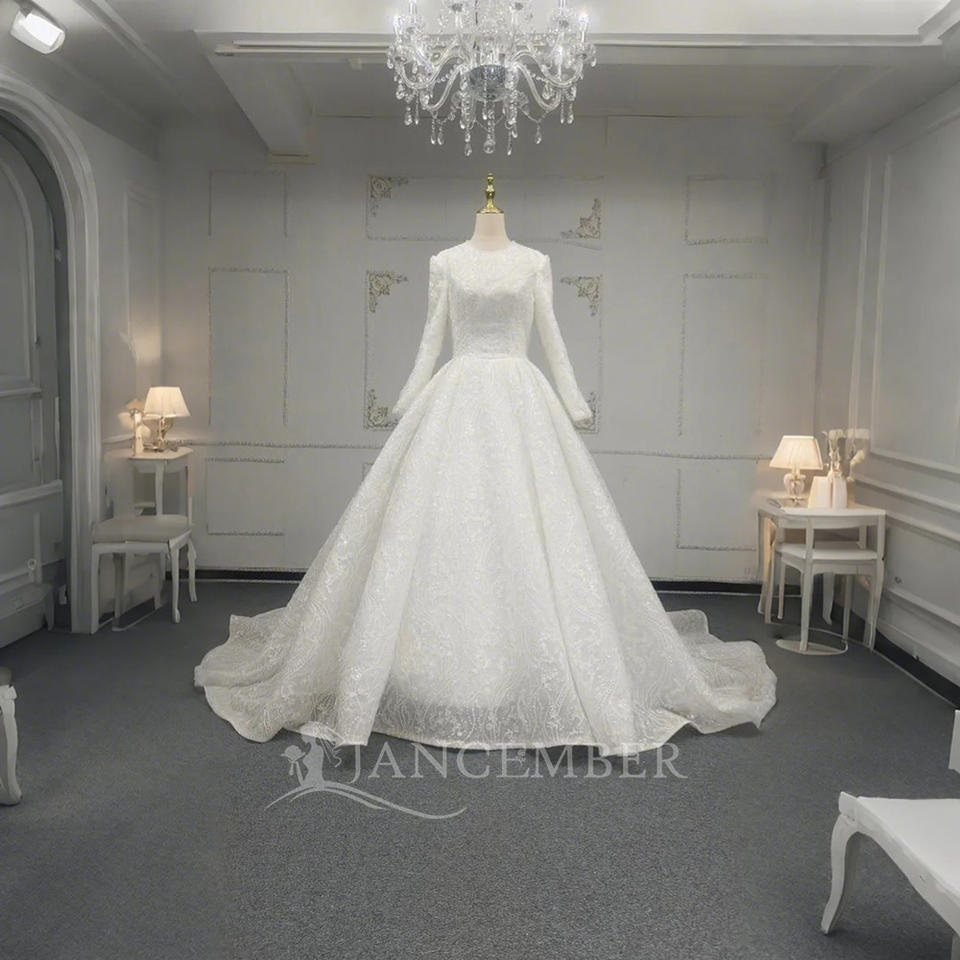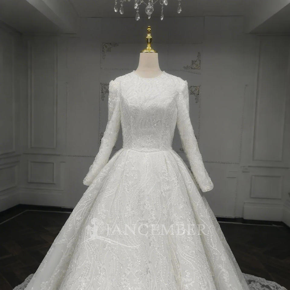 ชุดเดรสลูกไม้แขนยาวสำหรับ ANY42งานตัดเย็บด้วยคริสตัลสำหรับมุสลิมงานตัดเย็บประดับด้วยลูกปัดความยาวพื้นตามธรรมชาติ