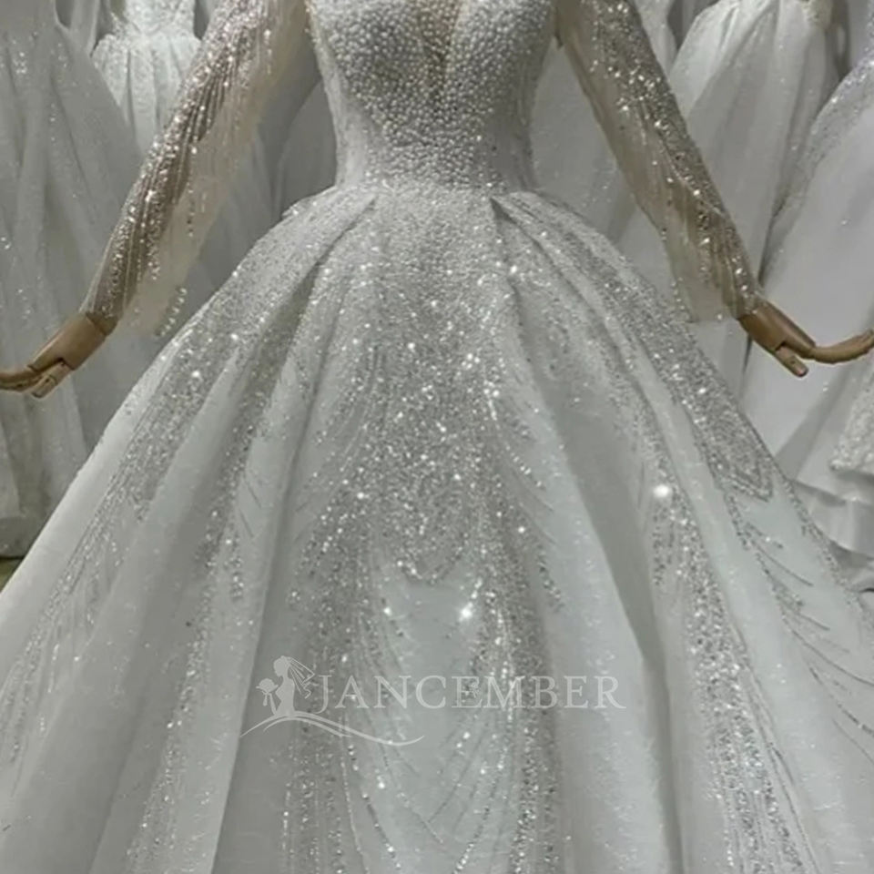 ชุดเดรสแต่งงานสำหรับเจ้าสาวชุดราตรีไข่มุกสีงาช้างปักเลื่อมหรูหรา BH26จากงาน