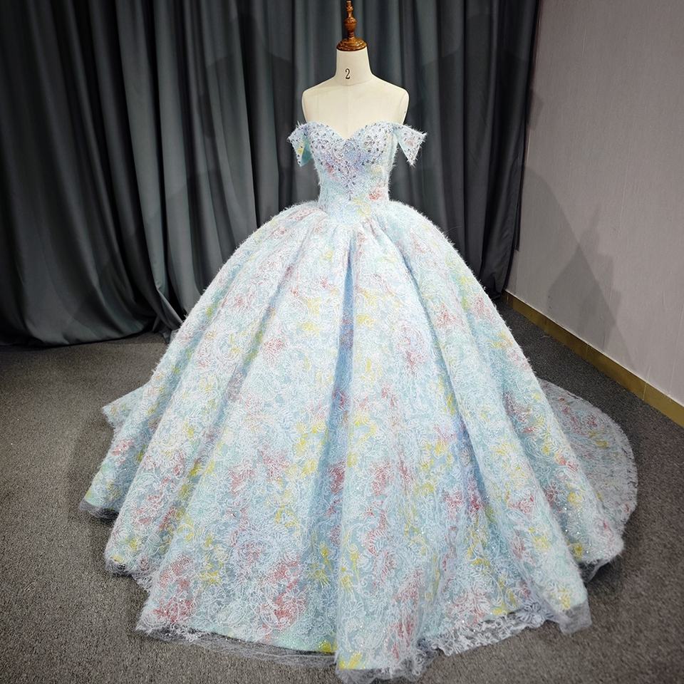 ชุดราตรีงาน Quinceanera ทรงบอลกาวน์แบบเอ็มไพร์ ไซส์พลัส รุ่น DY6737 โมเดิร์นคลาสสิก แบบเปิดไหล่ ประดับเลื่อม ลูกไม้ปักลาย พร้อมชายกระโปรงยาว