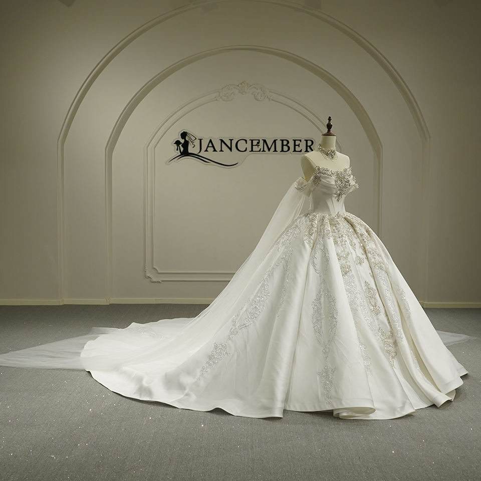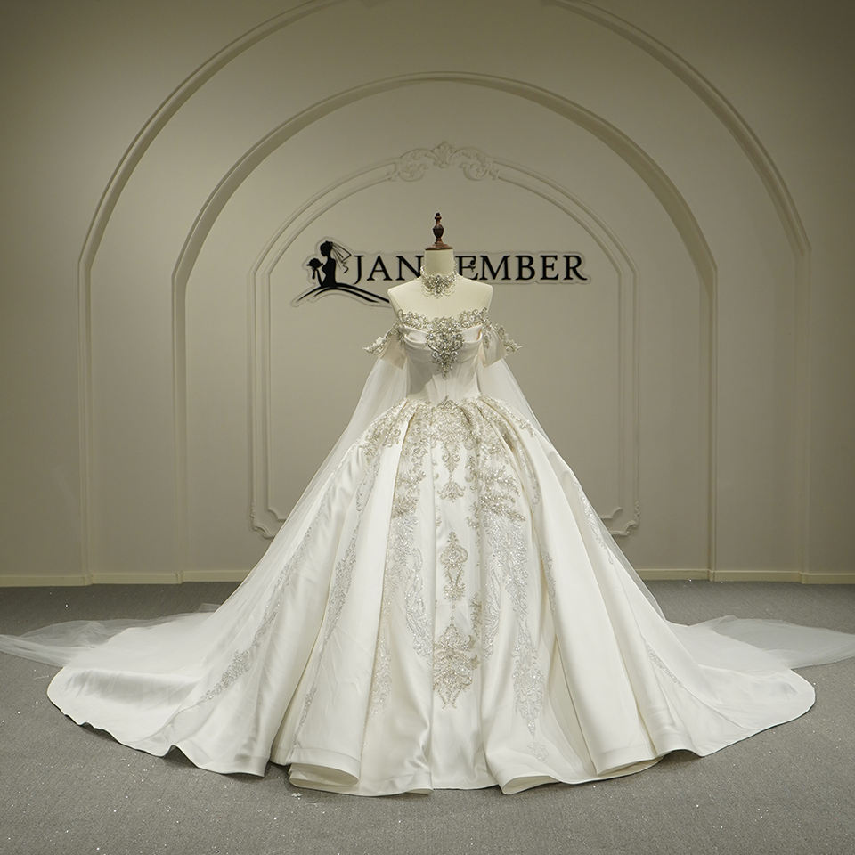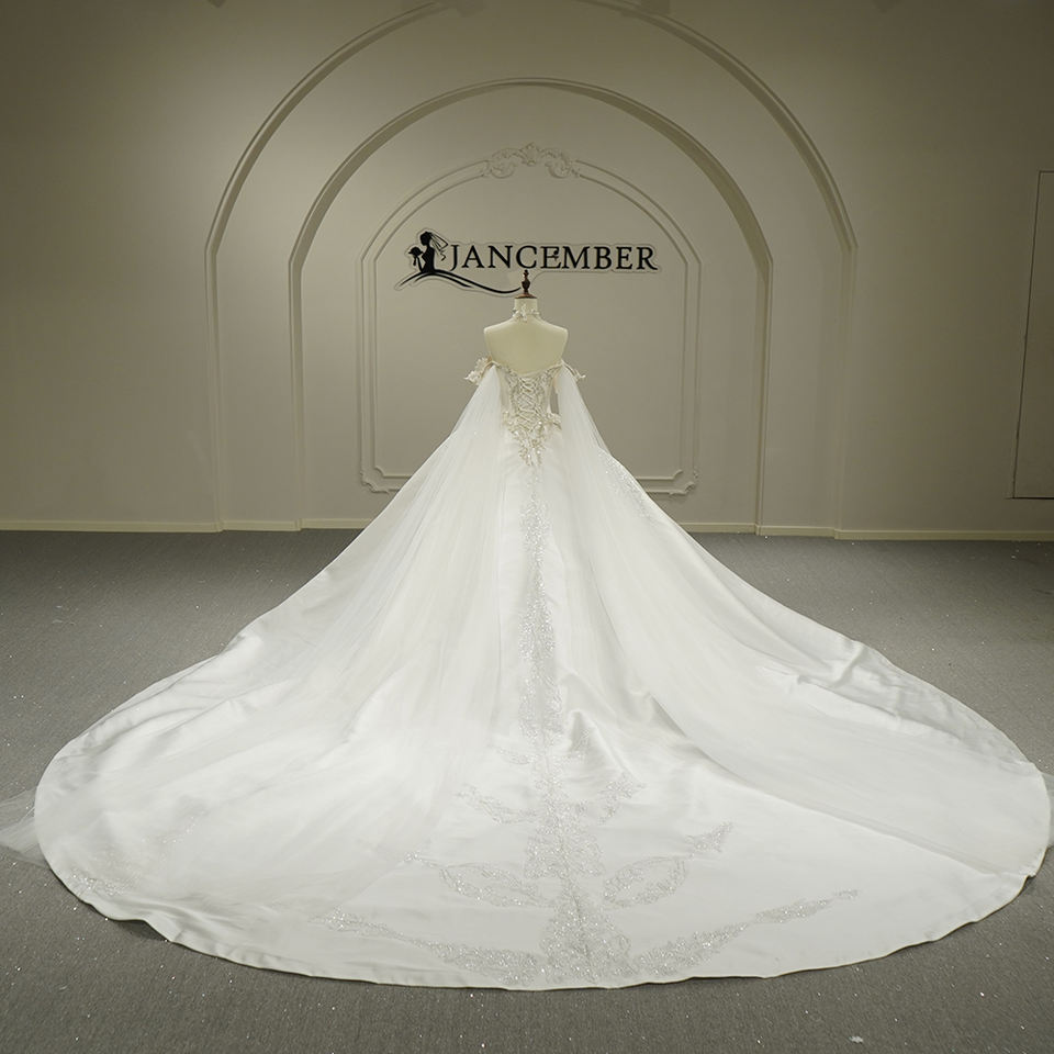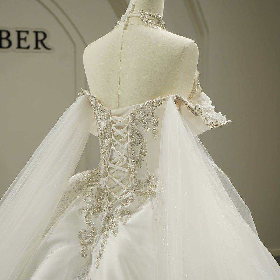 ชุดแต่งงานเจ้าสาวสมัยใหม่สำหรับผู้หญิง รุ่น GT26015 คอเสื้อแบบเรือ ตกแต่งด้วยผ้าทูลล์ ลูกไม้ปักลาย พร้อมชายกระโปรงยาวแบบชาเปล