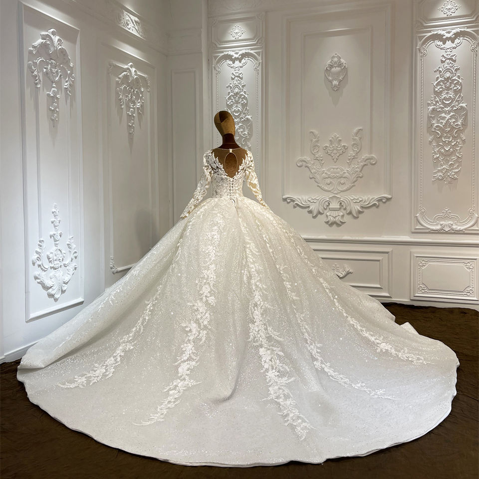 ชุดเดรสเจ้าสาวแขนยาวปักลาย LSCJ14แจนเซมเบอร์ชุดเจ้าสาวเปิดหลัง