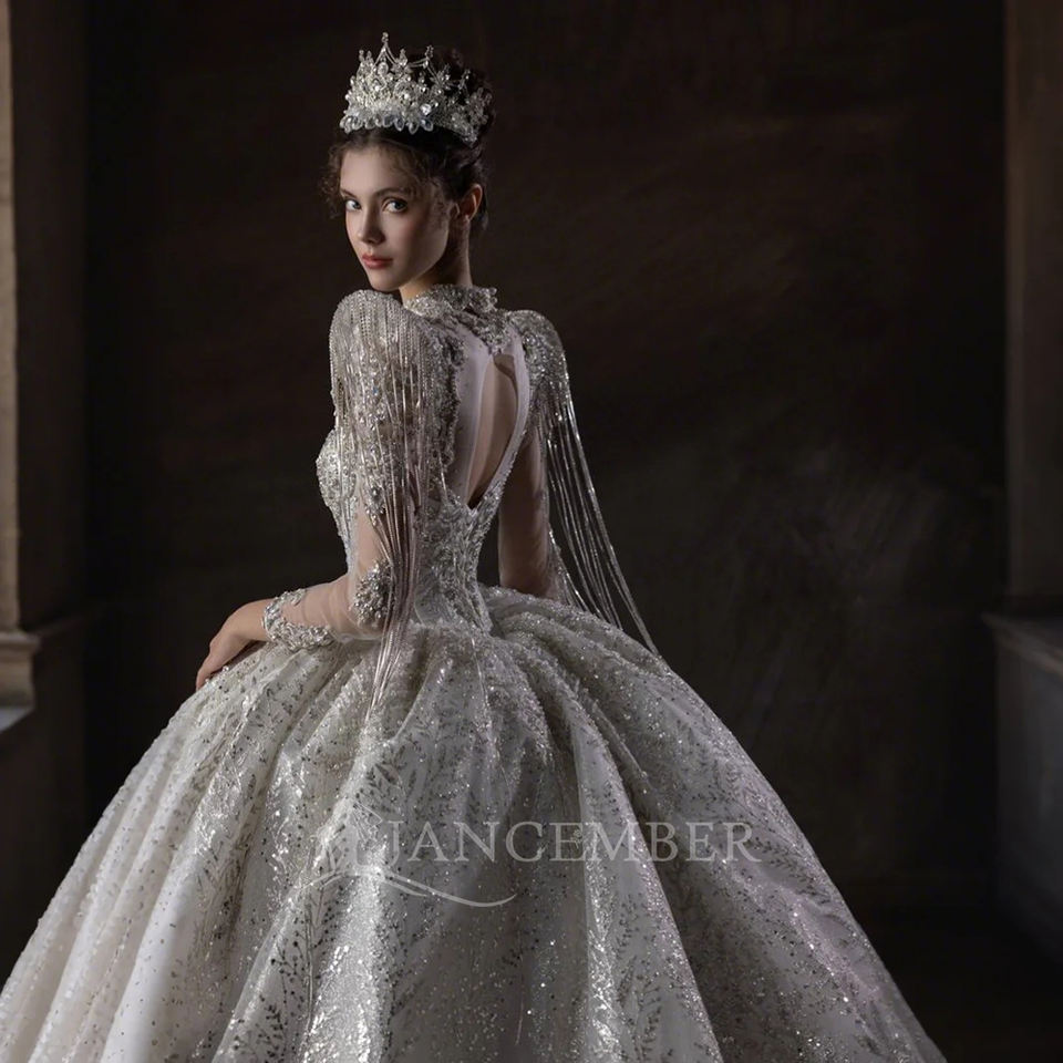 ชุดเดรสแต่งงานของผู้หญิงแจนเซมเบอร์ชุดแต่งงานคอสูงสวย LSHT076