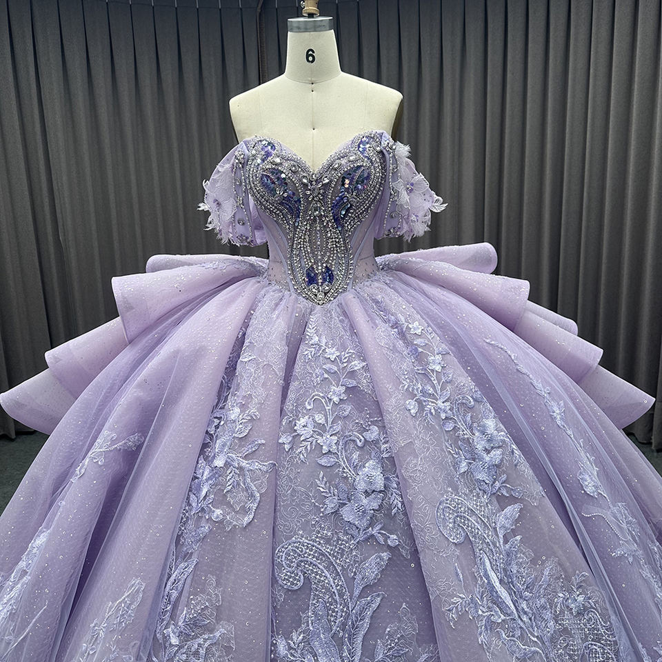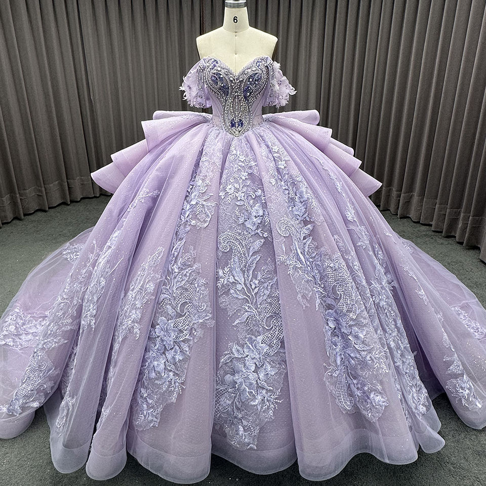 ชุดเดรสงาน Quinceanera ยาวประดับมุกสีม่วงไลแลค รุ่น Jancember LSMC14 ดีไซน์ดอกไม้หรูหรา