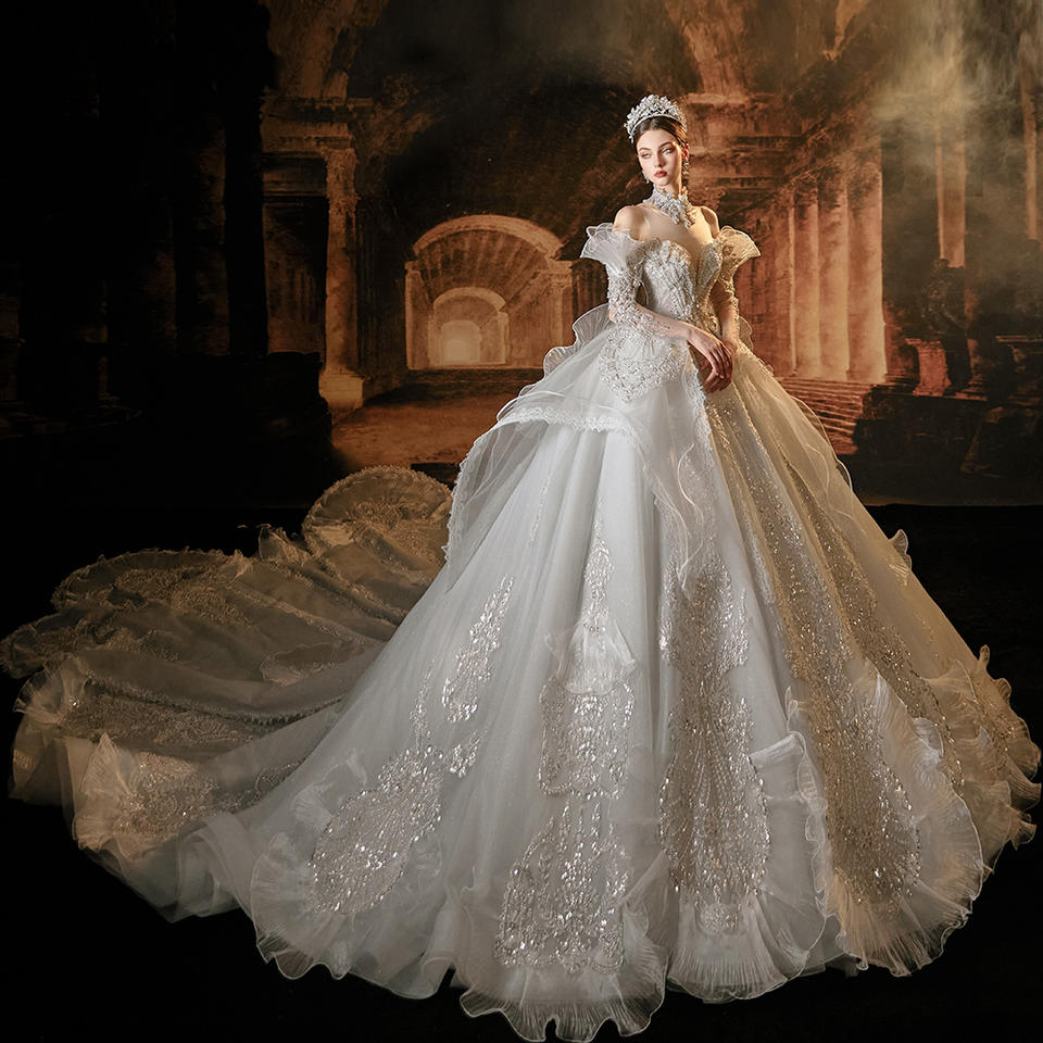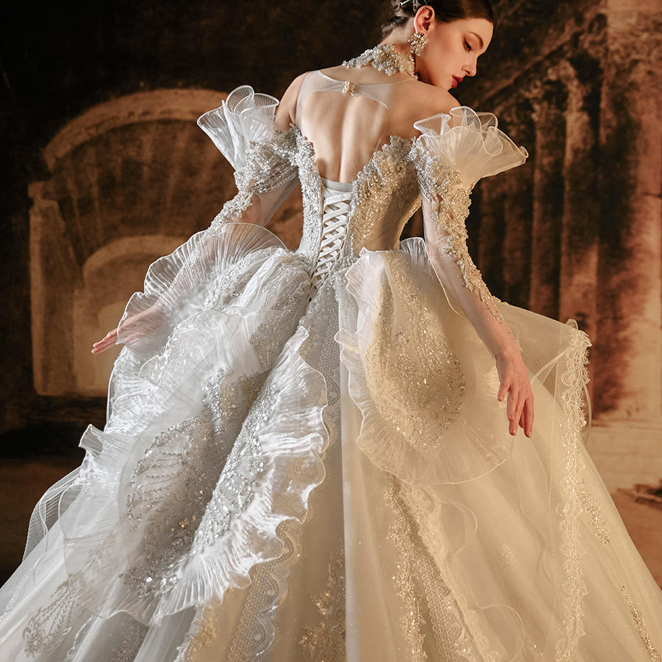 ชุดเดรสไปงานแต่งงานของผู้หญิงชุดกระโปรงยาวแบบเอ็มไพร์มีหางสวยงาม LSMX007 Jancember