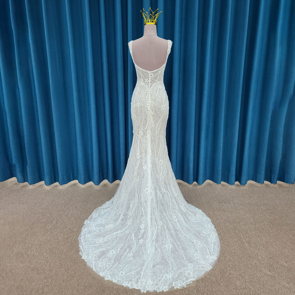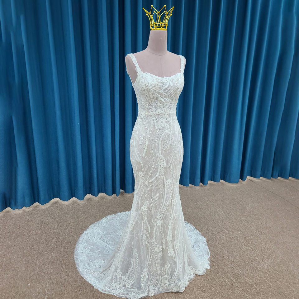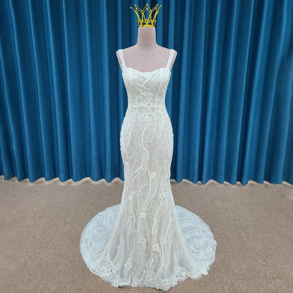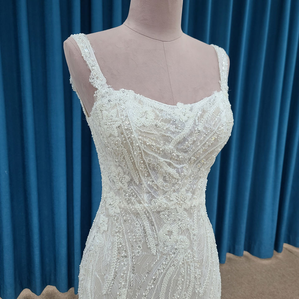 ชุดเดรส LSSM004แต่งงานทรงเมอร์เมดปักเลื่อมสายสปาเก็ตตี้หรูหรา